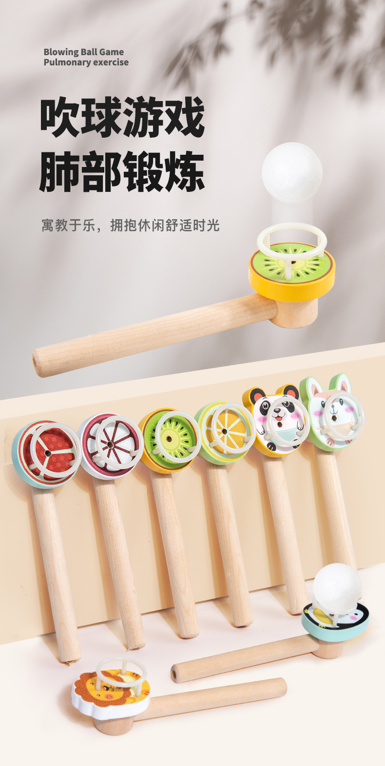 Wooden children's floating balloon magic, a classic and nostalgic balloon blowing and floating ball game for the 80s generation, a sensory integration training toy