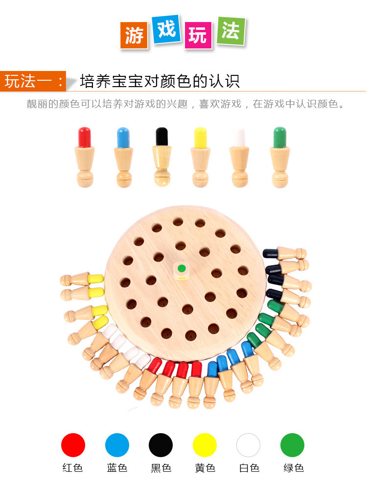 Wooden children's memory chess, color recognition and intelligence training for babies, early education enlightenment toys for kindergartens, parent-child games