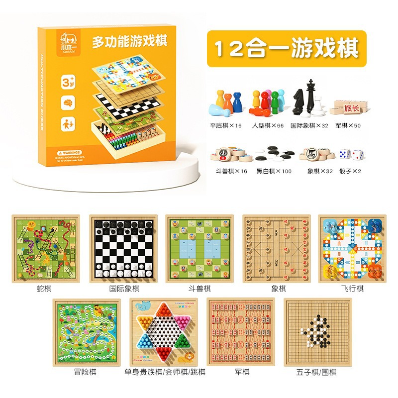 Magnetic 12-in-1 Game Chess (7 Five Encirclement Armies Single Meeting, Jumping Flying Elephant Fighting Snake National Elephant)