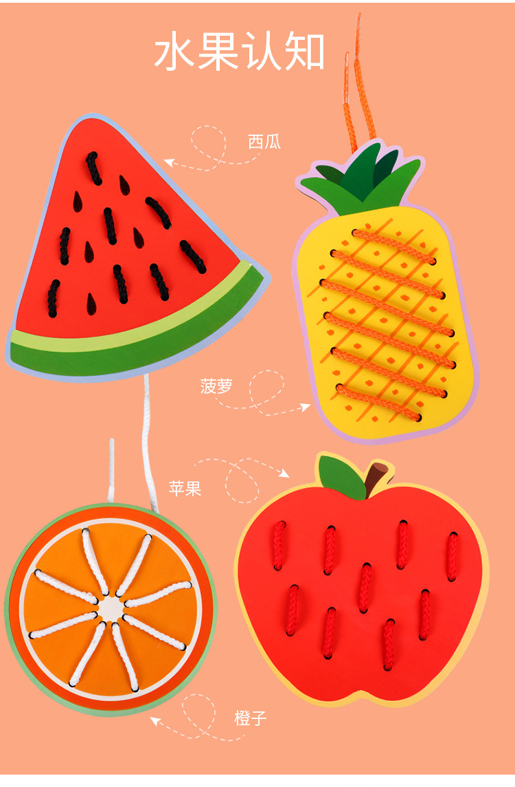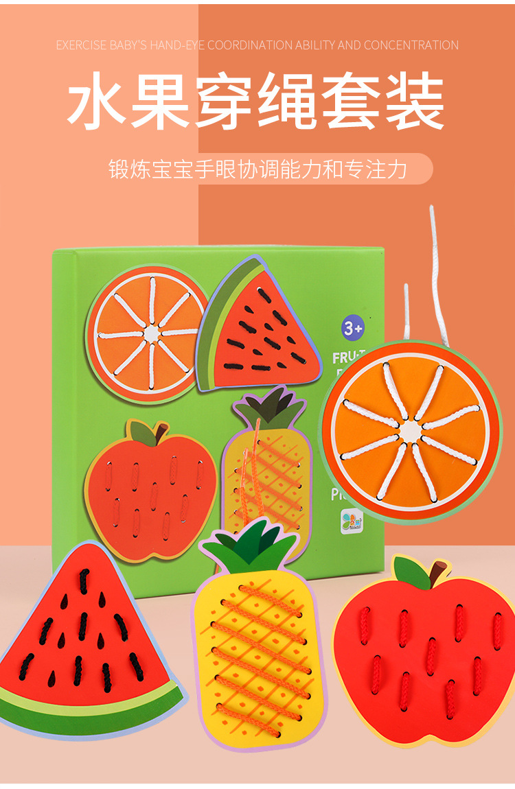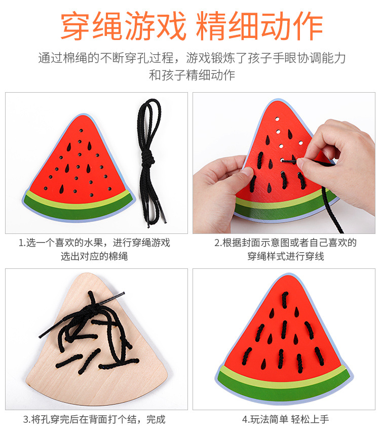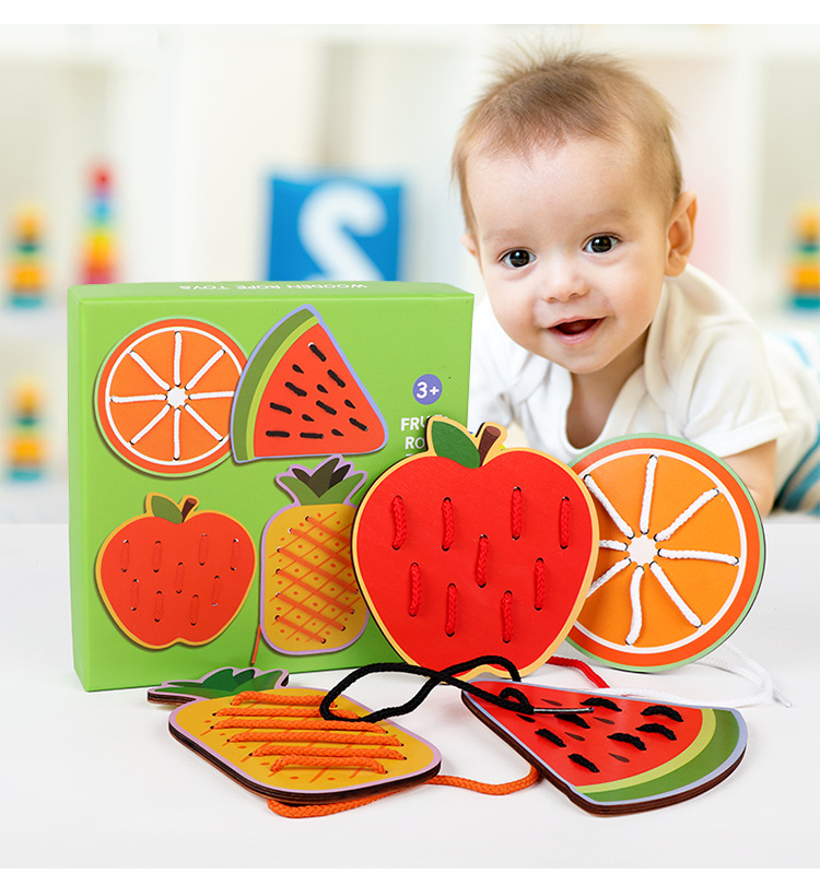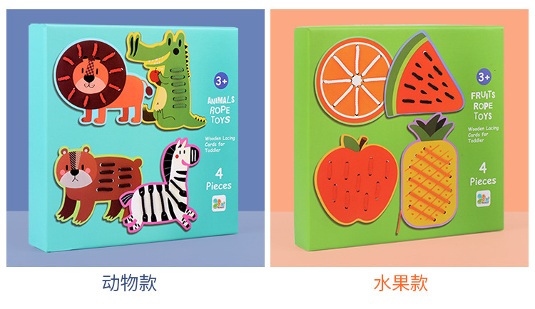 Wooden fruit animal stringing board, a toy for cultivating babies' fine motor skills, intelligence, jigsaw puzzles and animal cognition