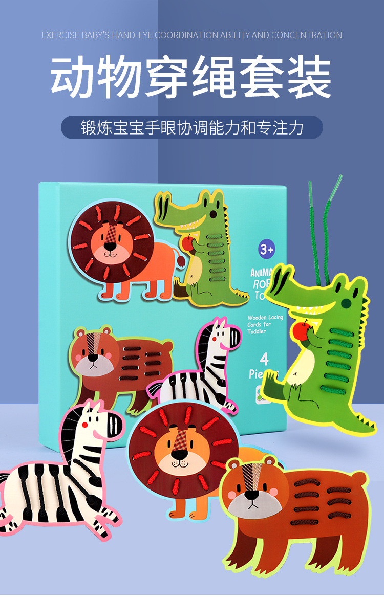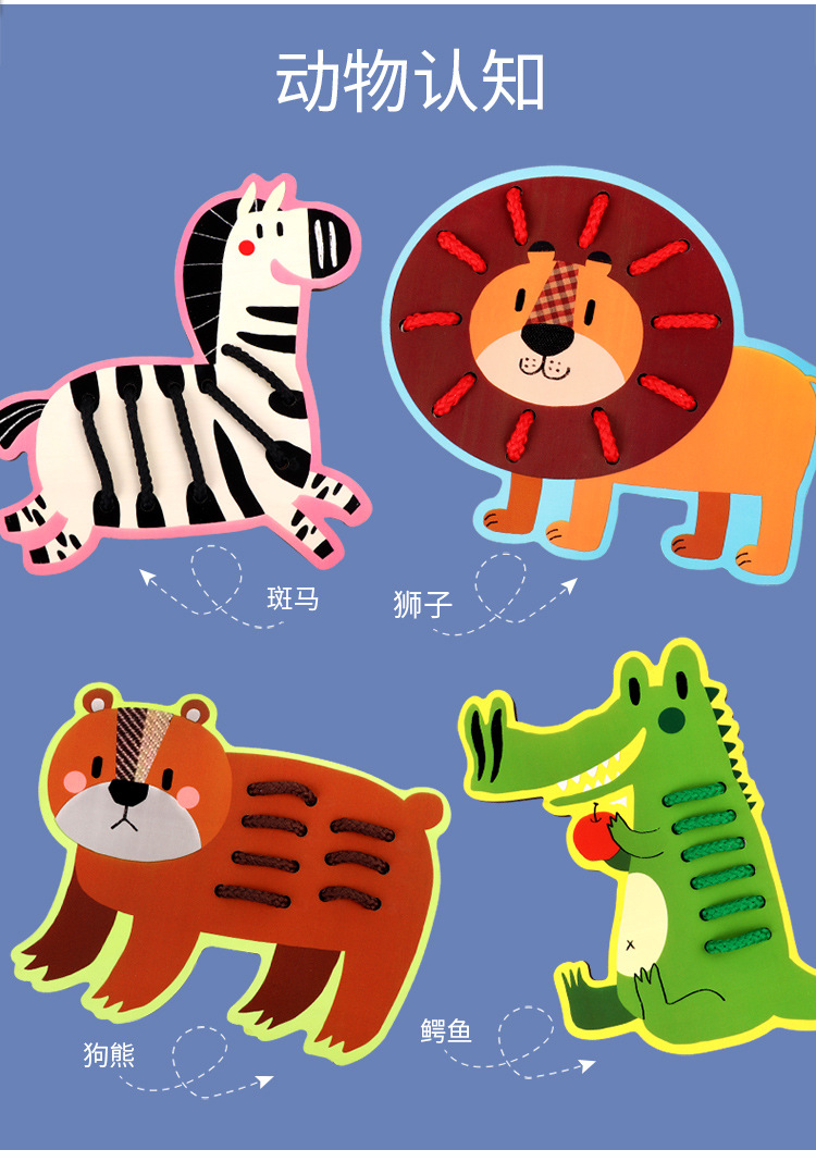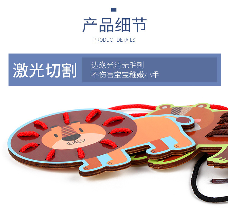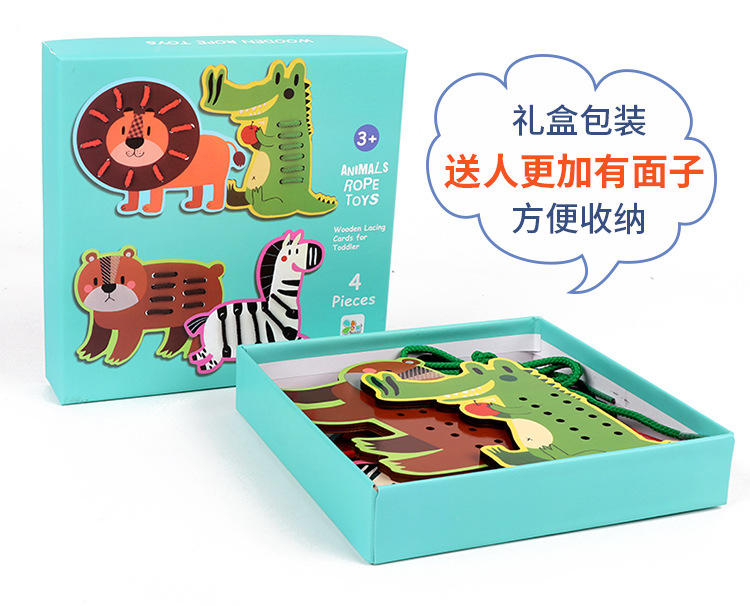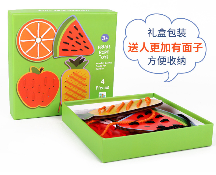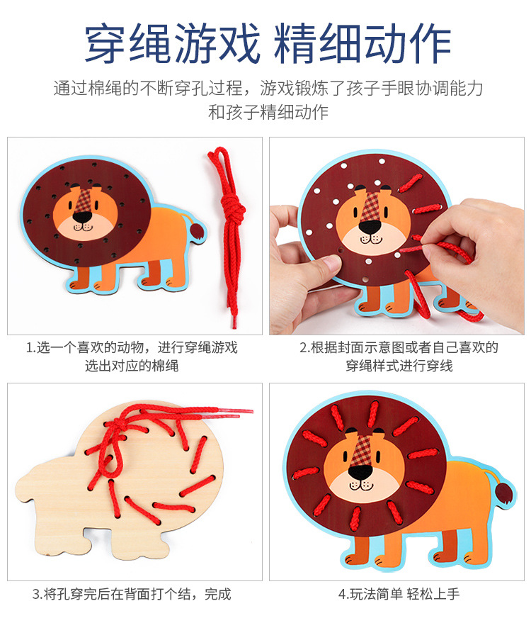Wooden fruit animal stringing board, a toy for cultivating babies' fine motor skills, intelligence, jigsaw puzzles and animal cognition
