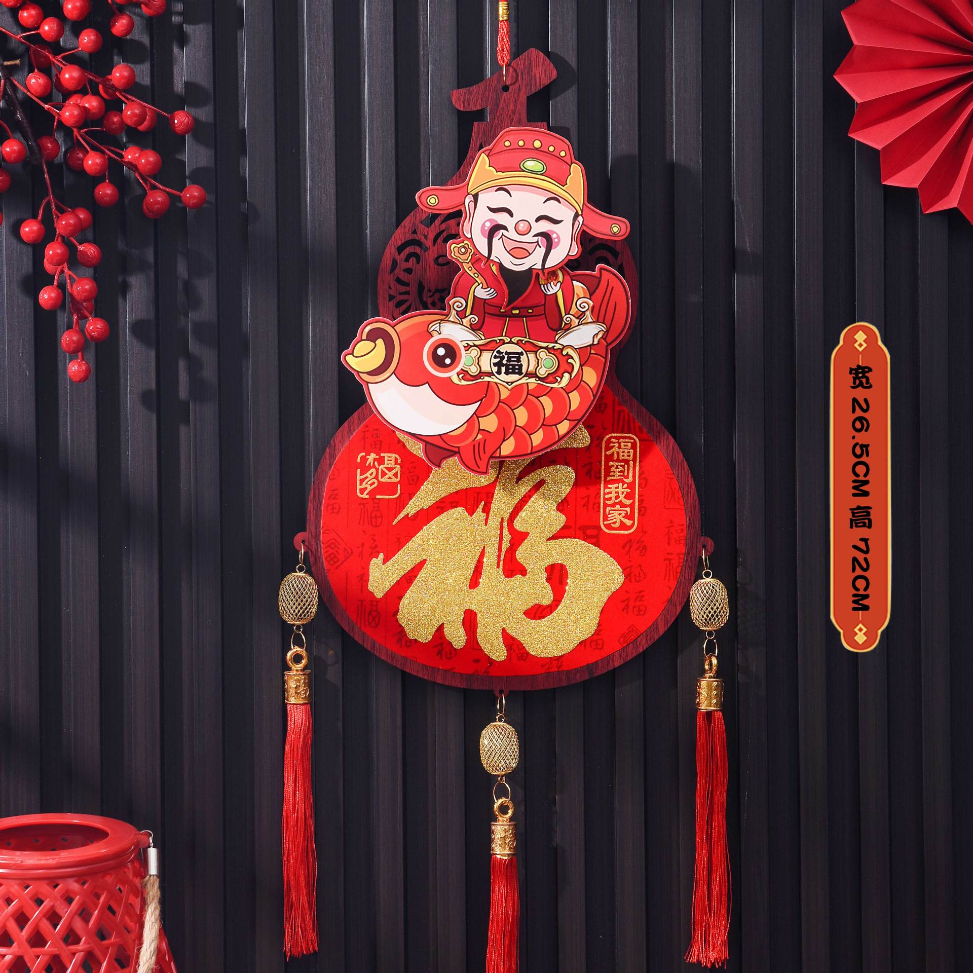Gourd shaking head God of Wealth + Single-sided wooden pendant + battery given as a gift [tassels need to be inserted + hanging rope]