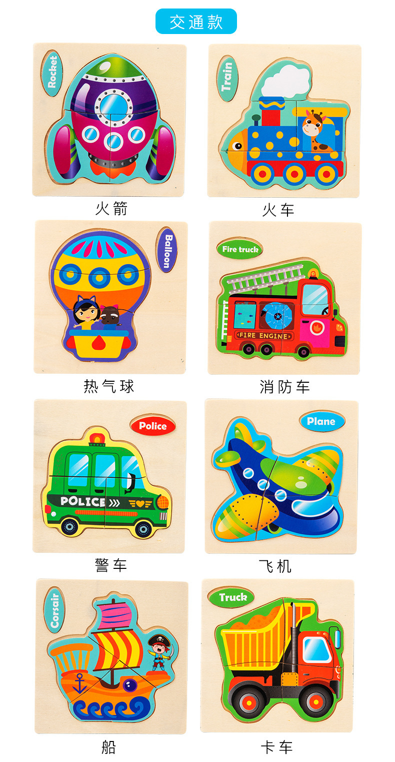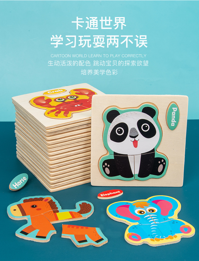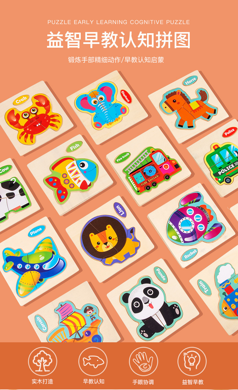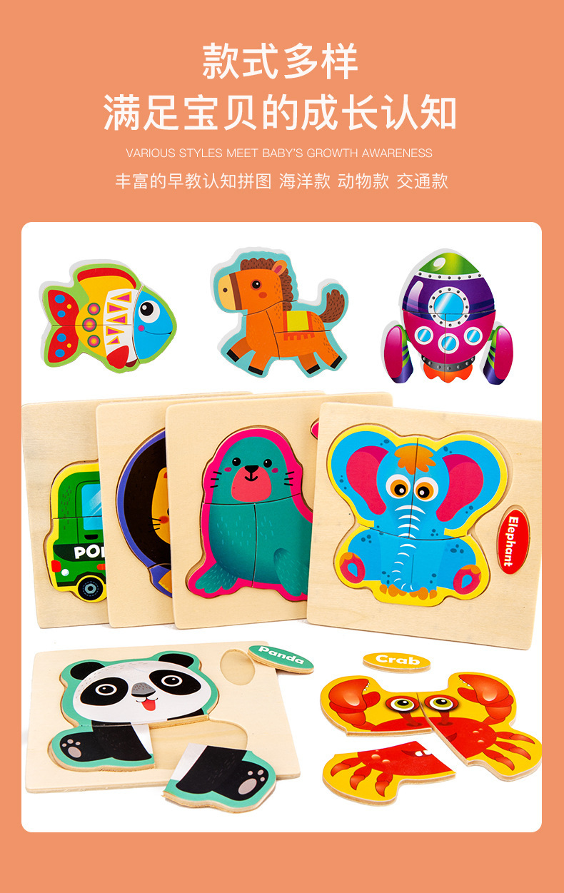 Wooden jigsaw puzzle toys, panda police car, dinosaur irregular-shaped jigsaw puzzle, detachable boat model, children's educational toys