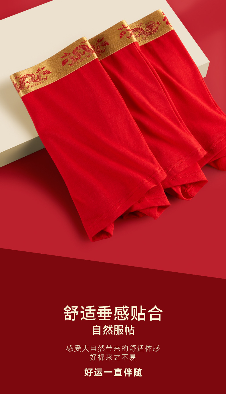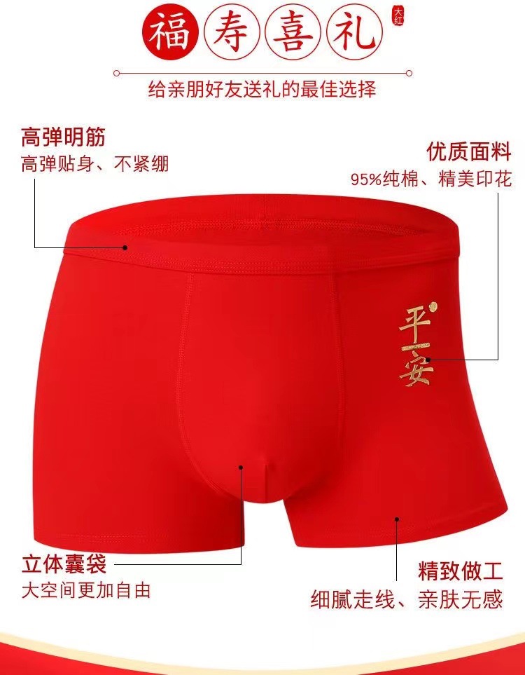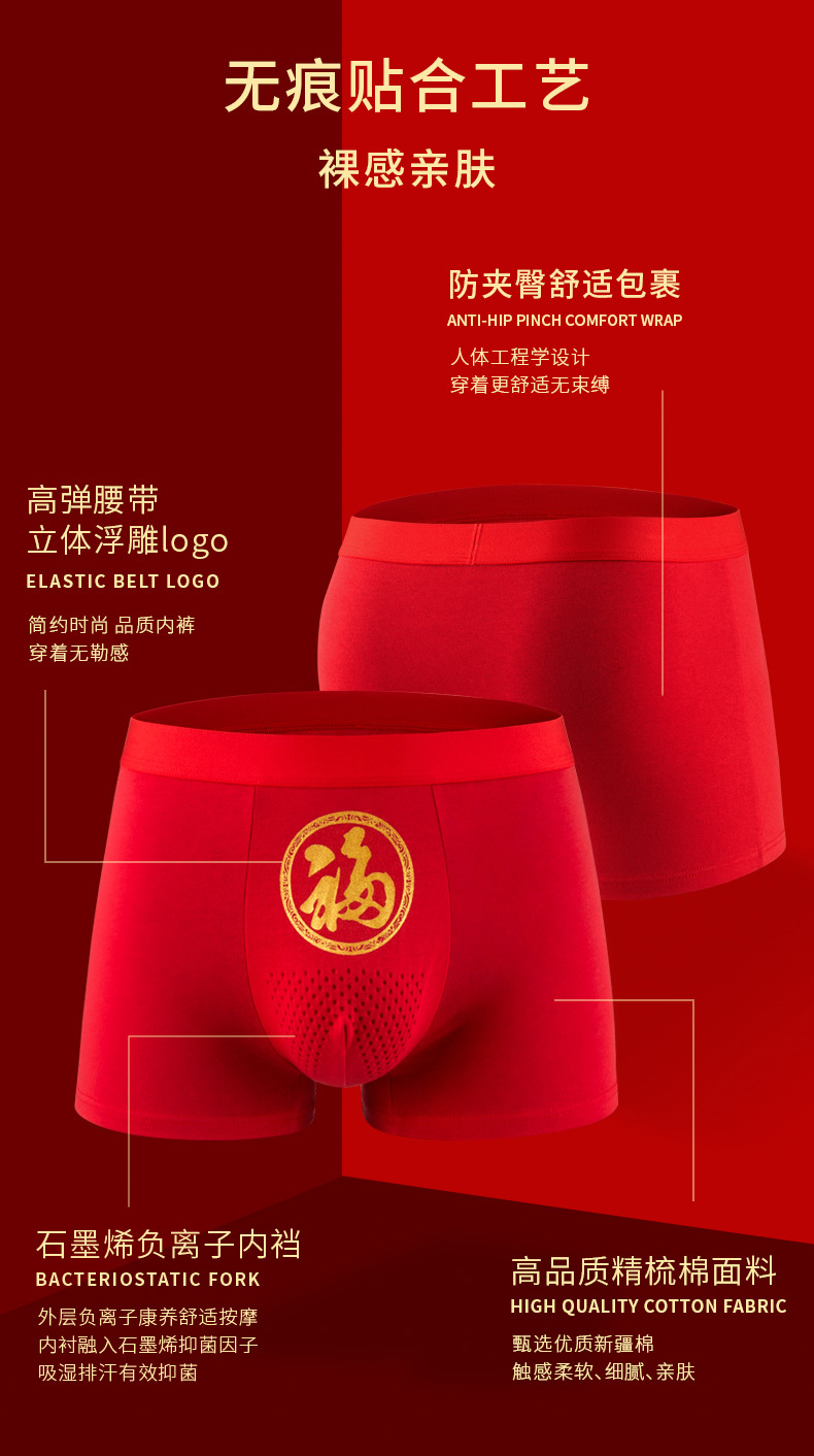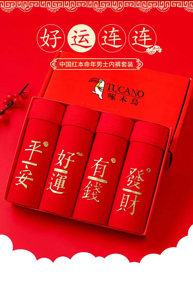 Woodpecker men's Underwear, red pants for the zodiac year, breathable cotton pants, elastic briefs, genuine products from the original factory