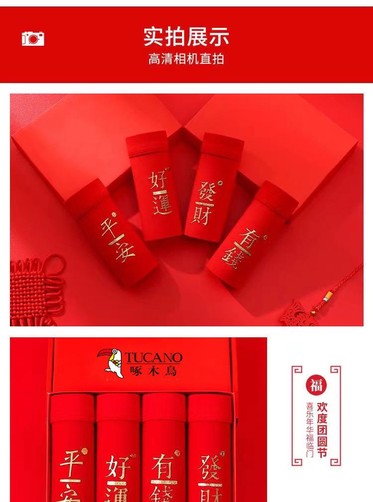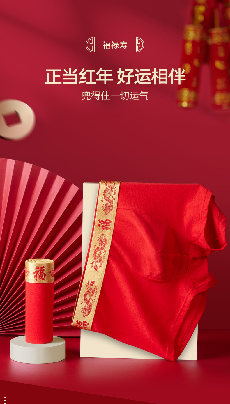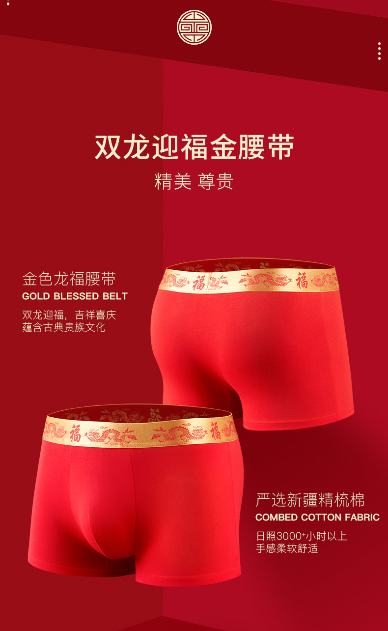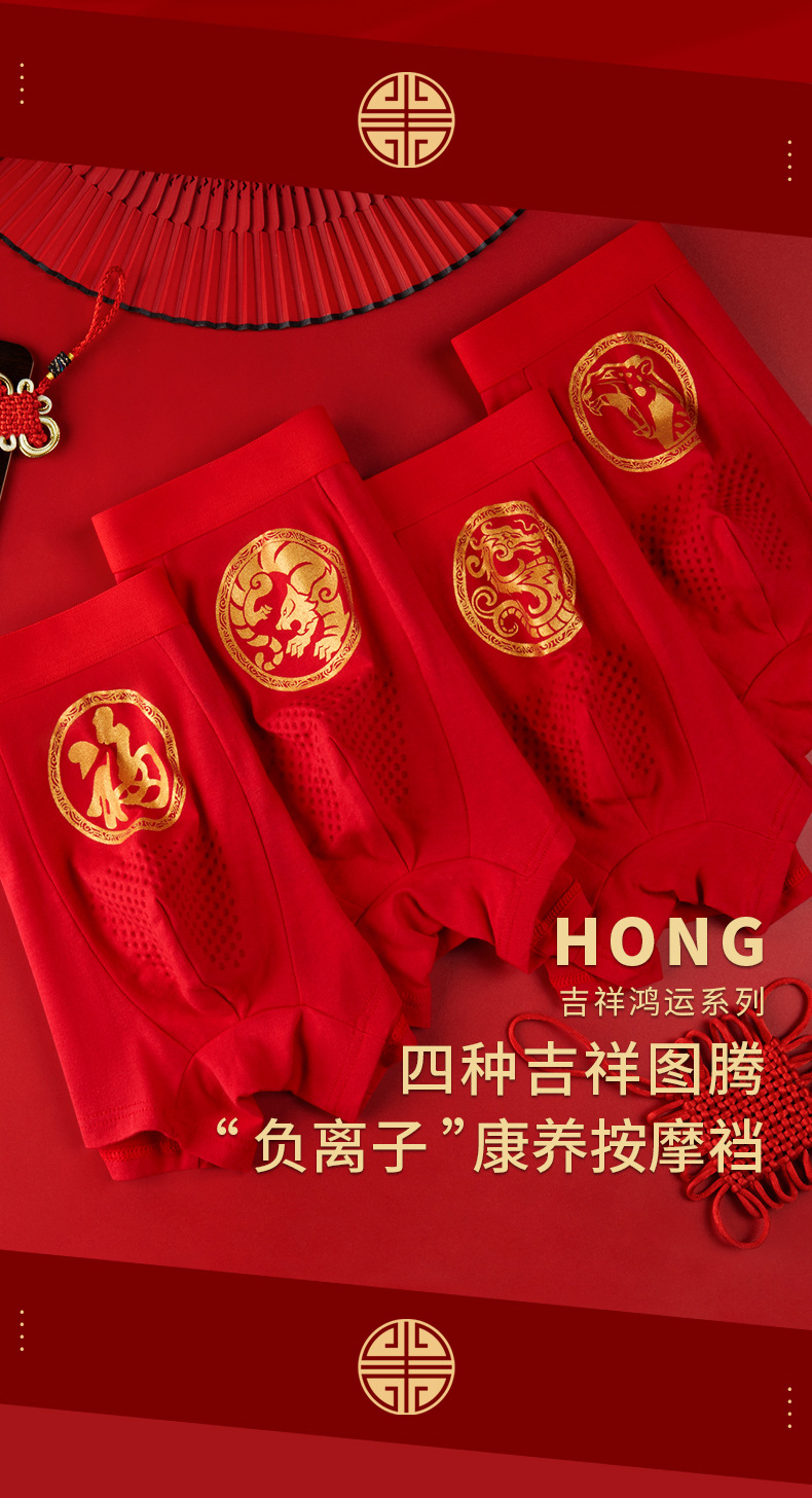 Woodpecker men's Underwear, red pants for the zodiac year, breathable cotton pants, elastic briefs, genuine products from the original factory