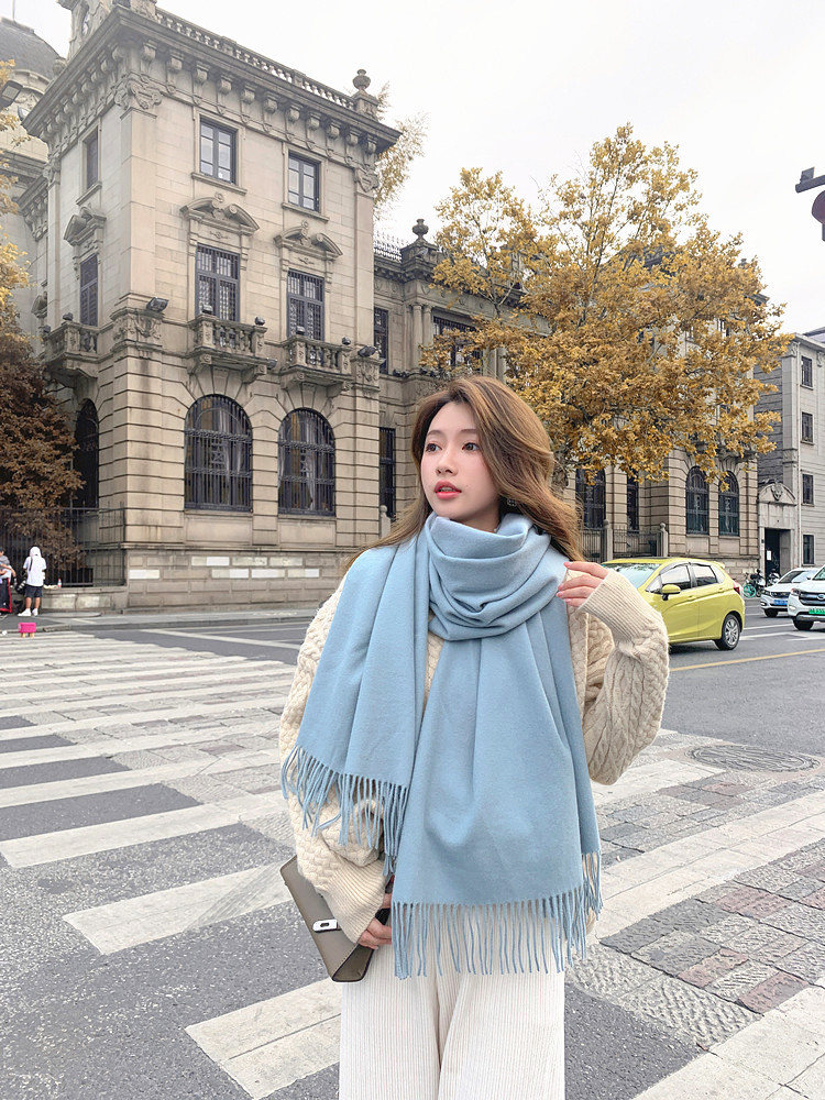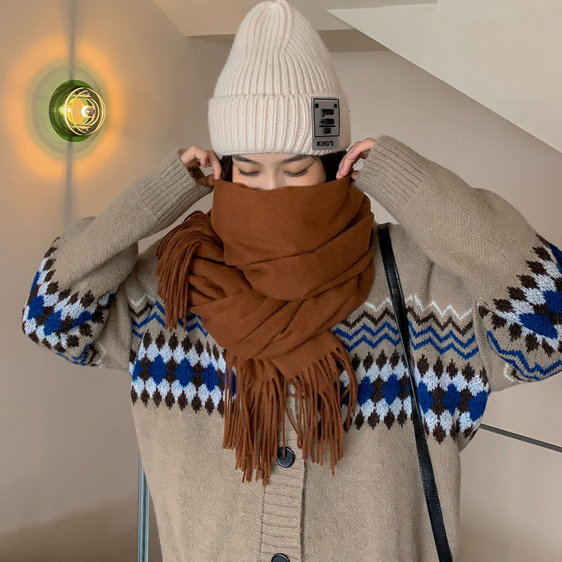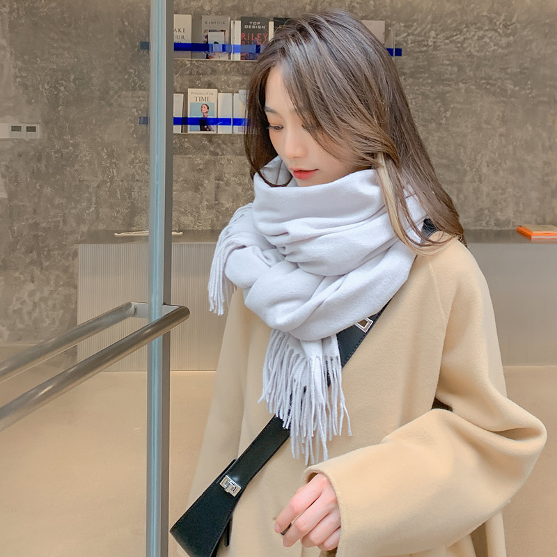 Wool and cashmere scarf for women's winter solid color 2025 new style white shawl scarf for men's autumn and winter imitation cashmere scarf