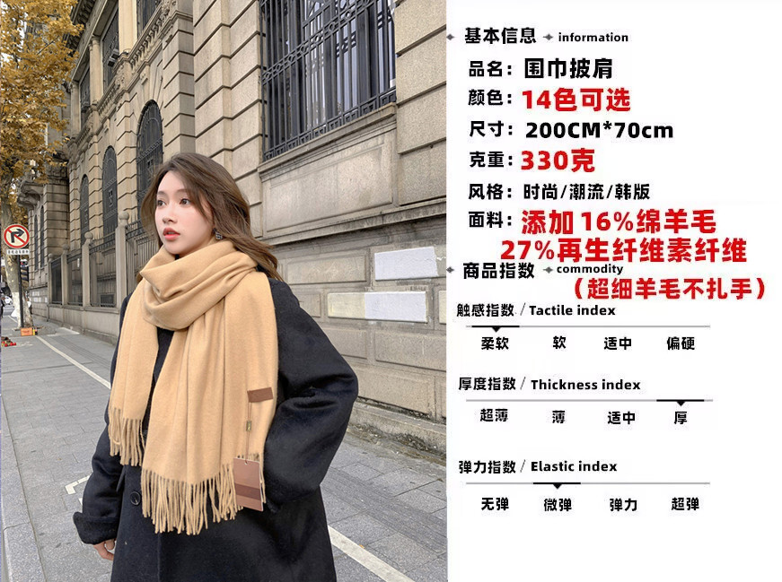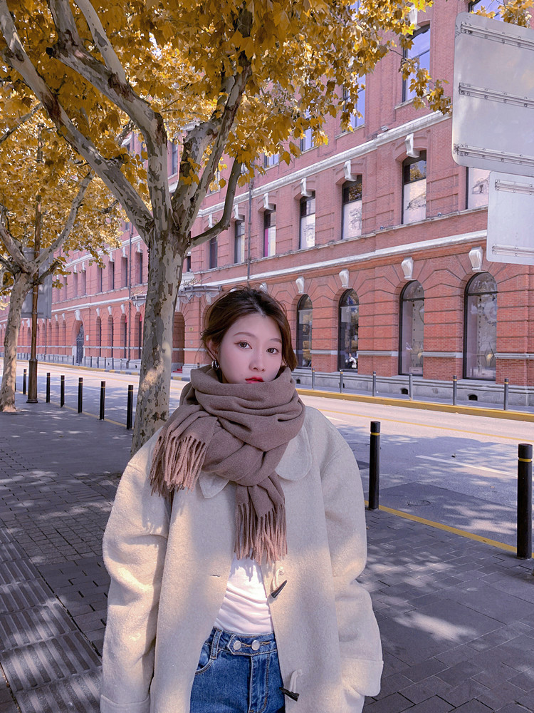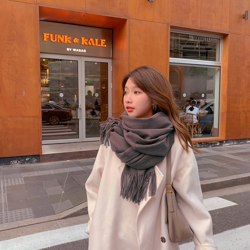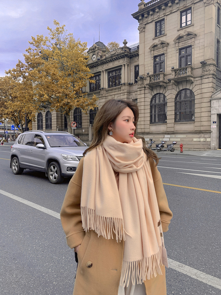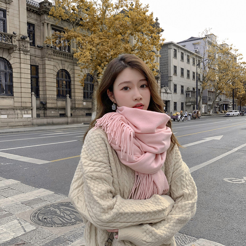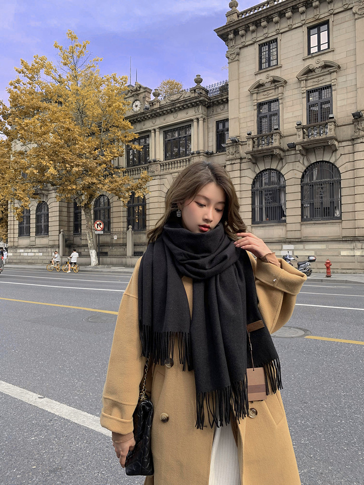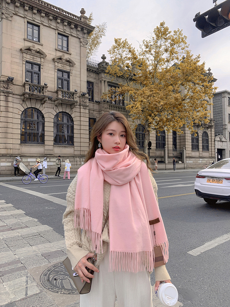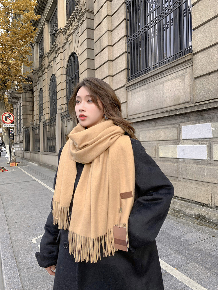 Wool scarves for women to keep warm in autumn and winter, thickened cashmere scarves, versatile new women's shawls, solid color scarves wholesale