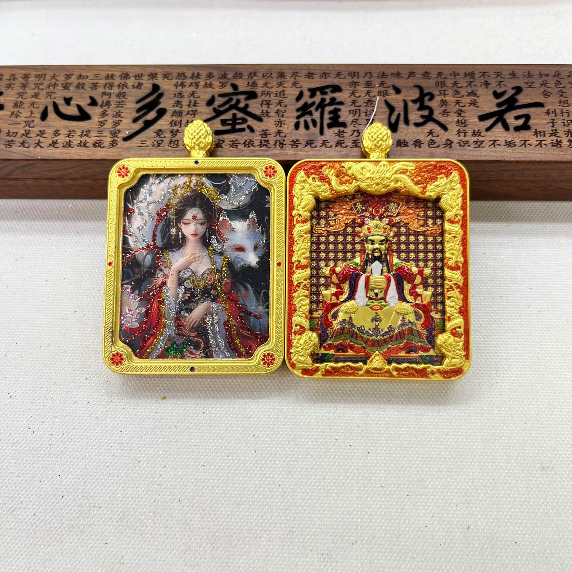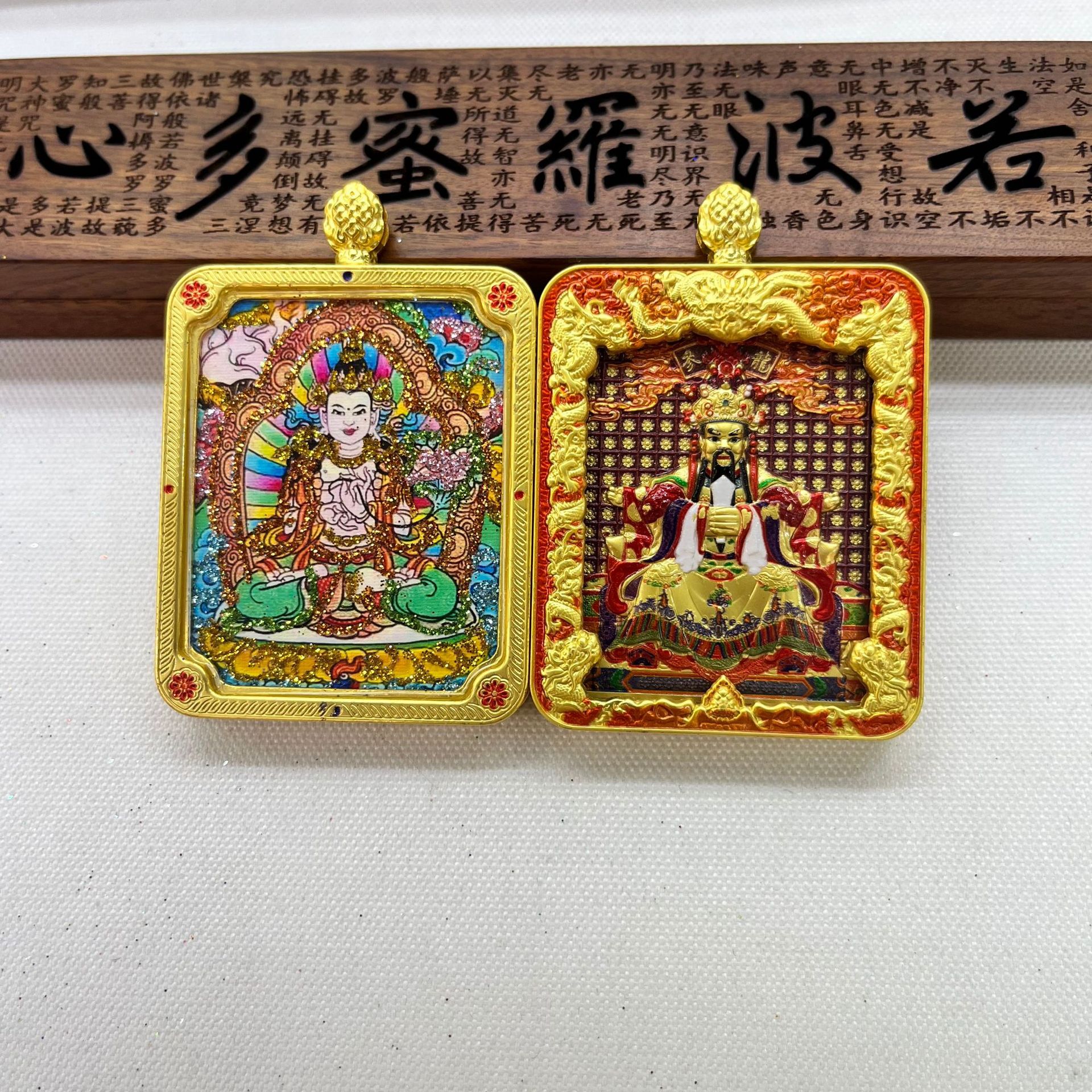 Wutai Mountain Thangka Relief Double-sided three-dimensional Dragon, Wuye Devouring Gold Beast Double-sided Thangka Past and Present Necklace Pendant