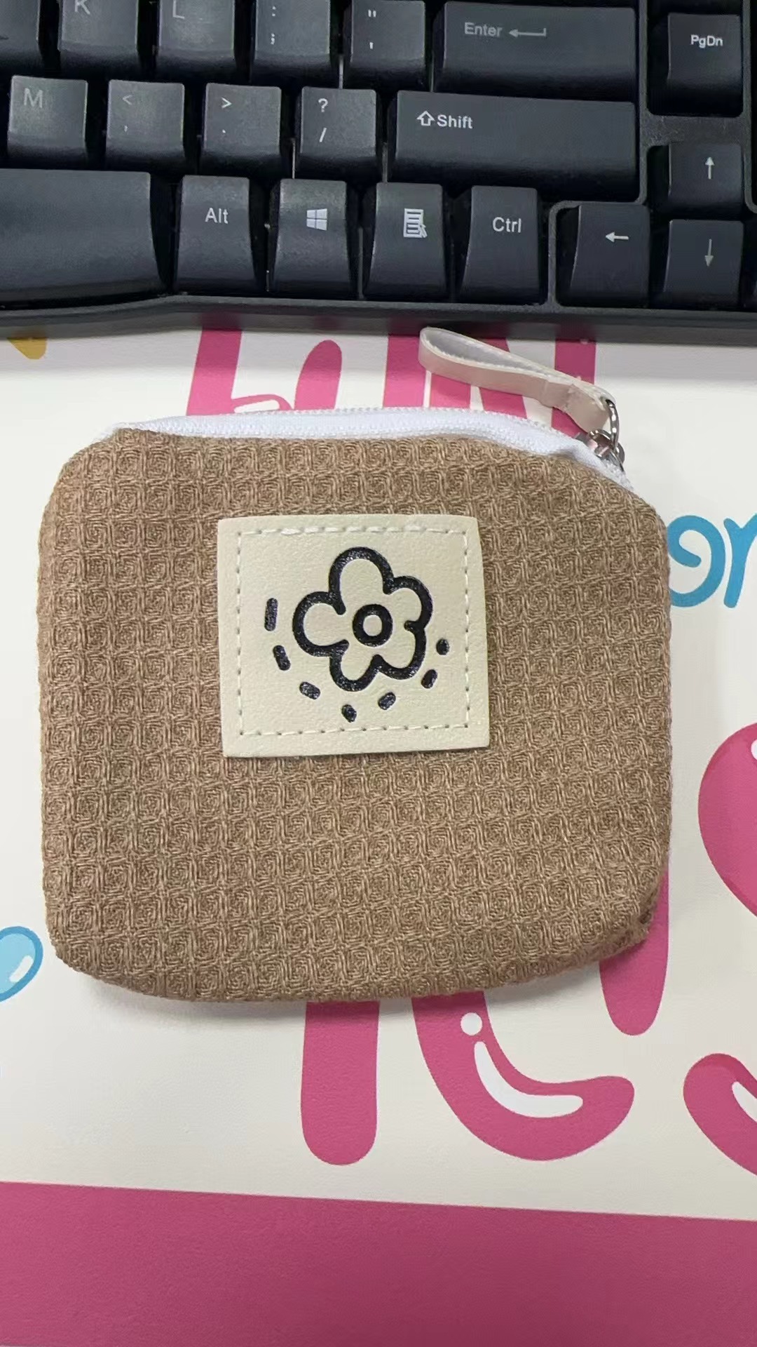 Ww Japanese-style cute and simple waffle coin purse, small and portable wrist bag for women, summer flowers, 2024 new style