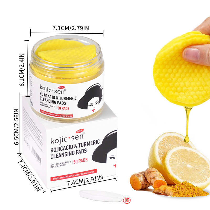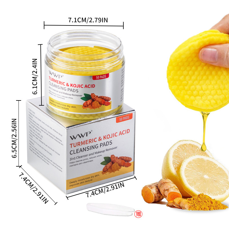 WWP Amazon TK Cross-border Turmeric Cleansing Pad 50 Pieces Bestseller Kojic Acid Makeup Remover Cleansing Cotton Exfoliate the face and skin