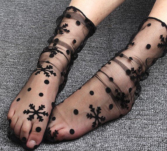 Black printed lace midsocks