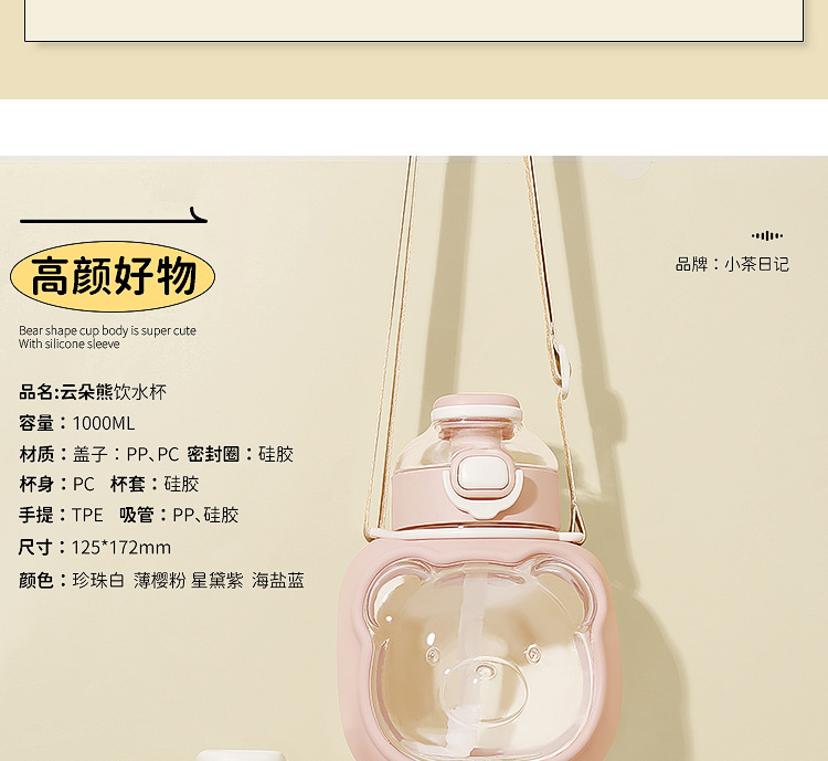 Xiaocha Diary Cloud Bear Summer New Product: Large capacity, high appearance level cartoon plastic Cup Portable outdoor children's water bottle