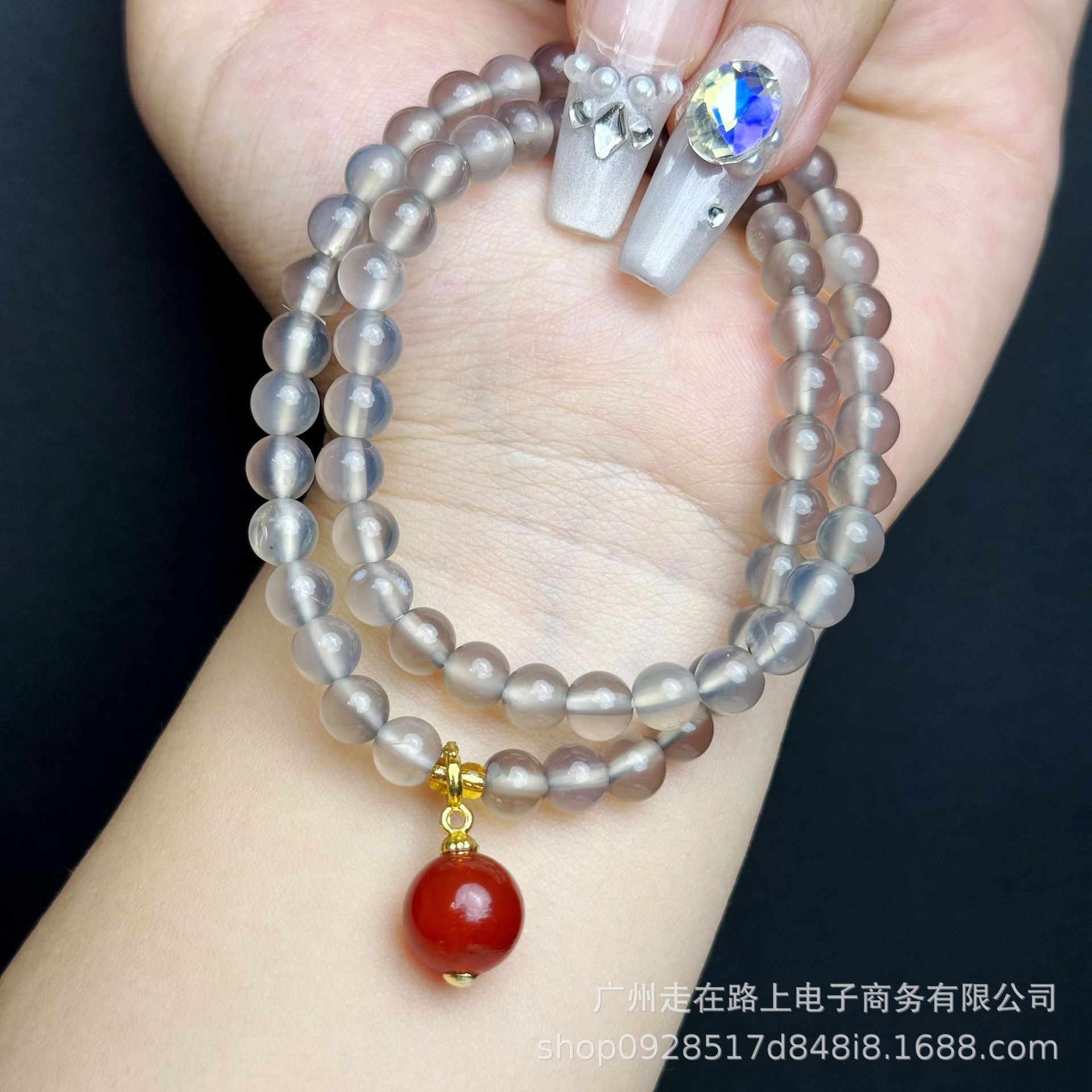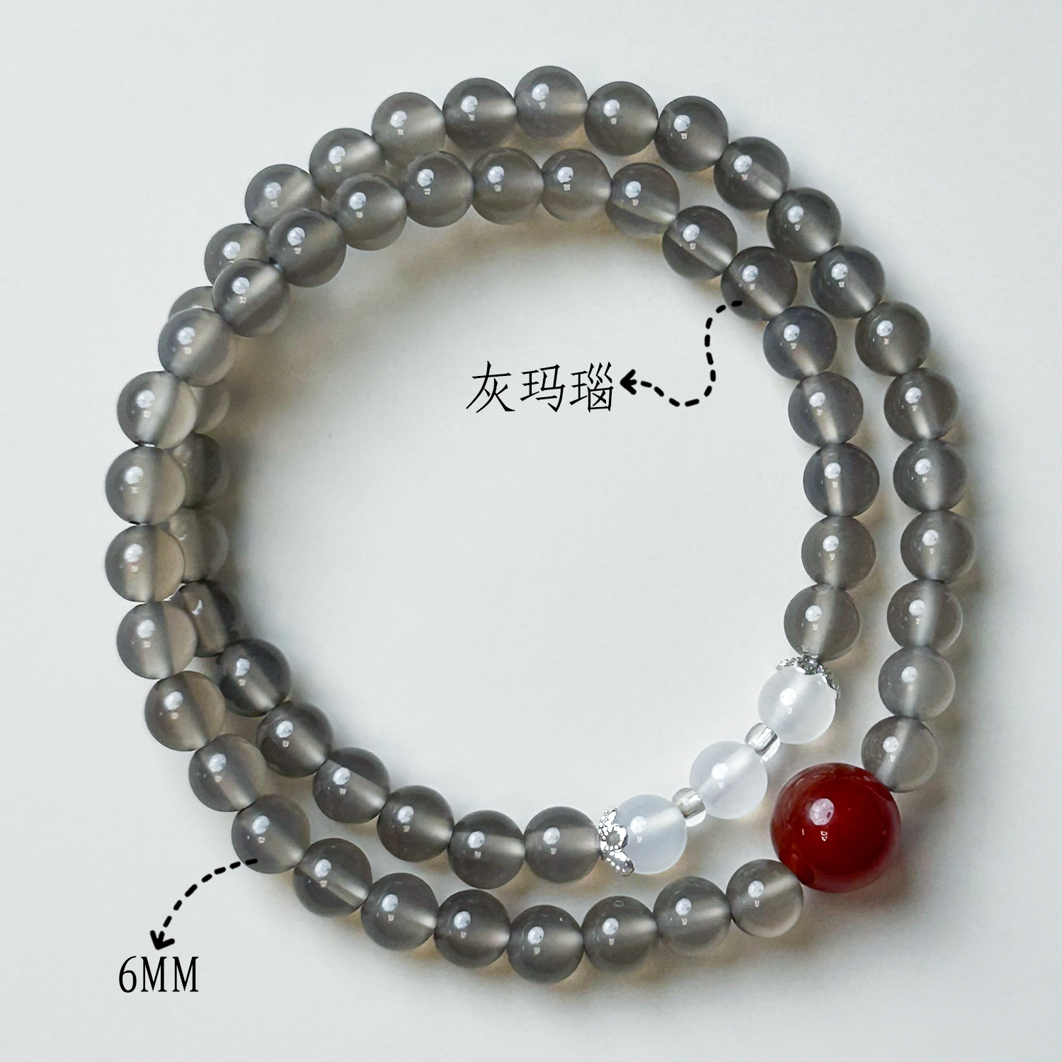 Grey agate double ring top bead red agate (6mm)