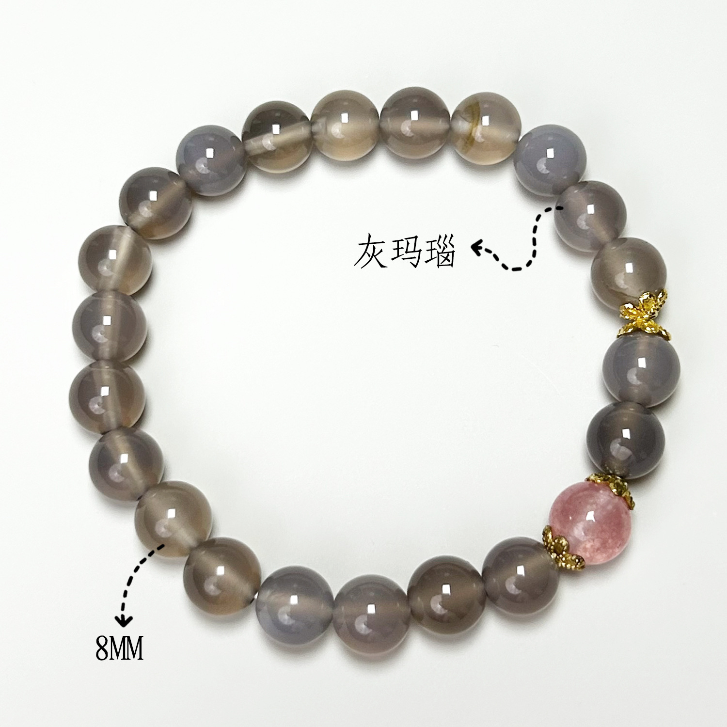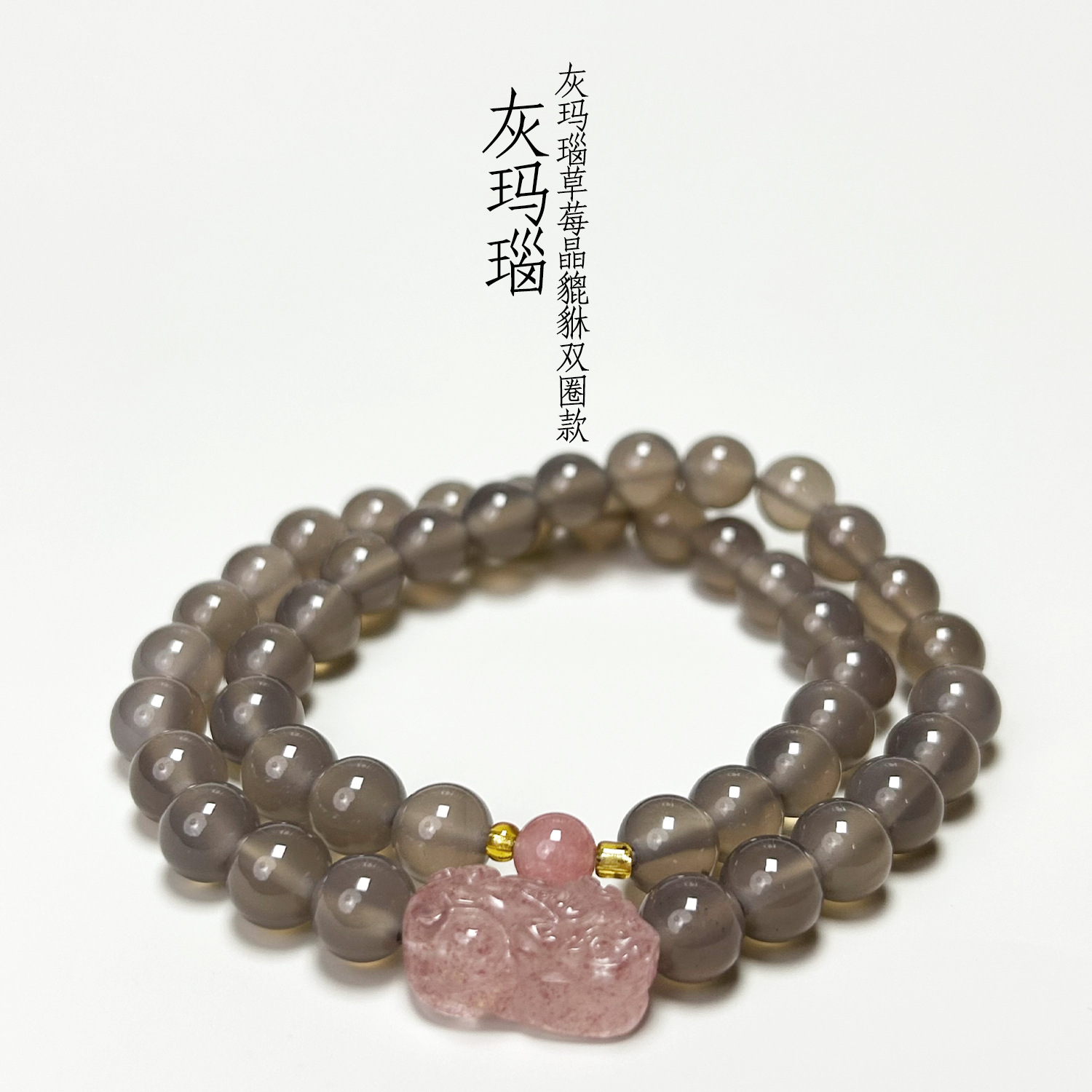 Grey agate double-ring strawberry crystal PI Xiu (8mm)