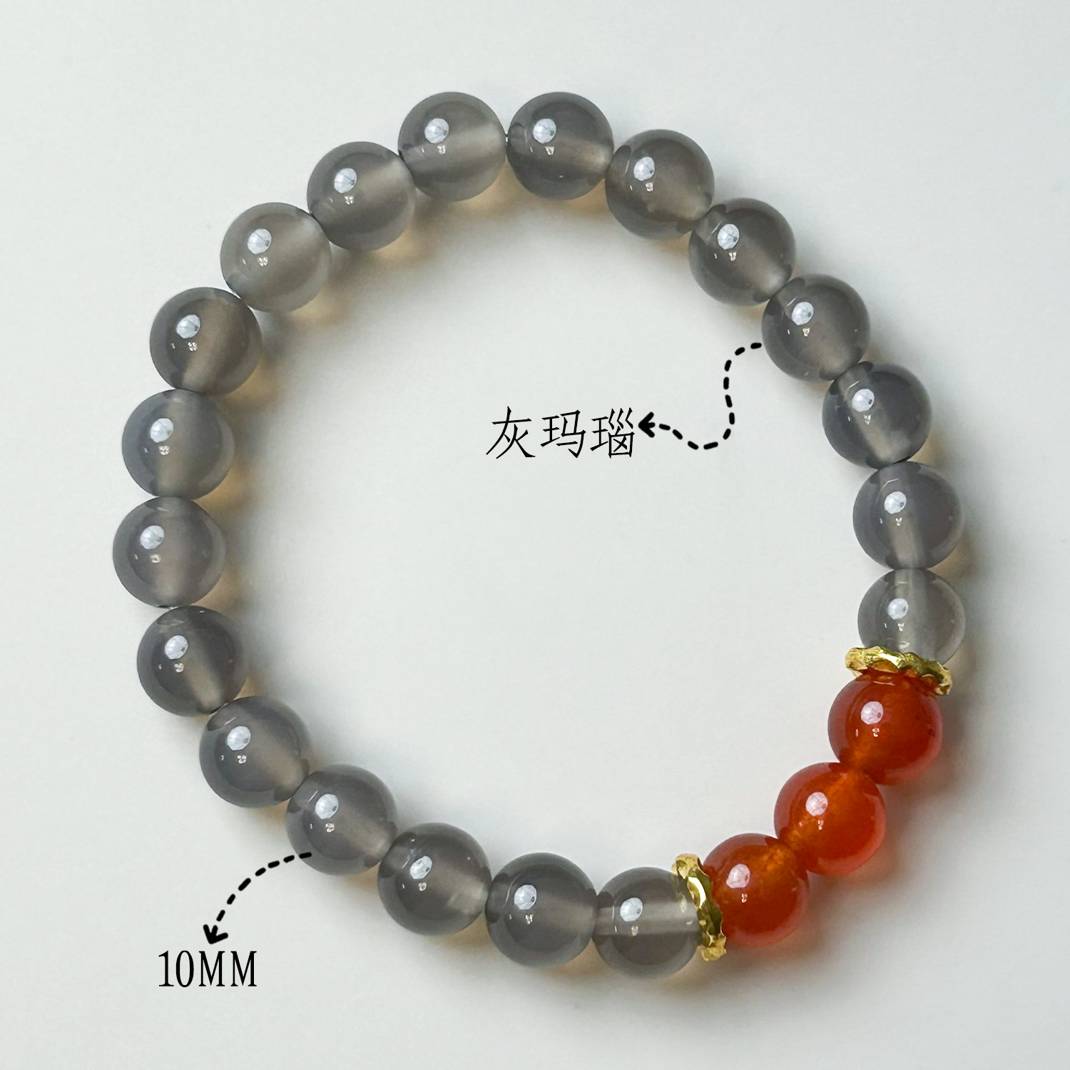 Grey agate, red agate (8mm)