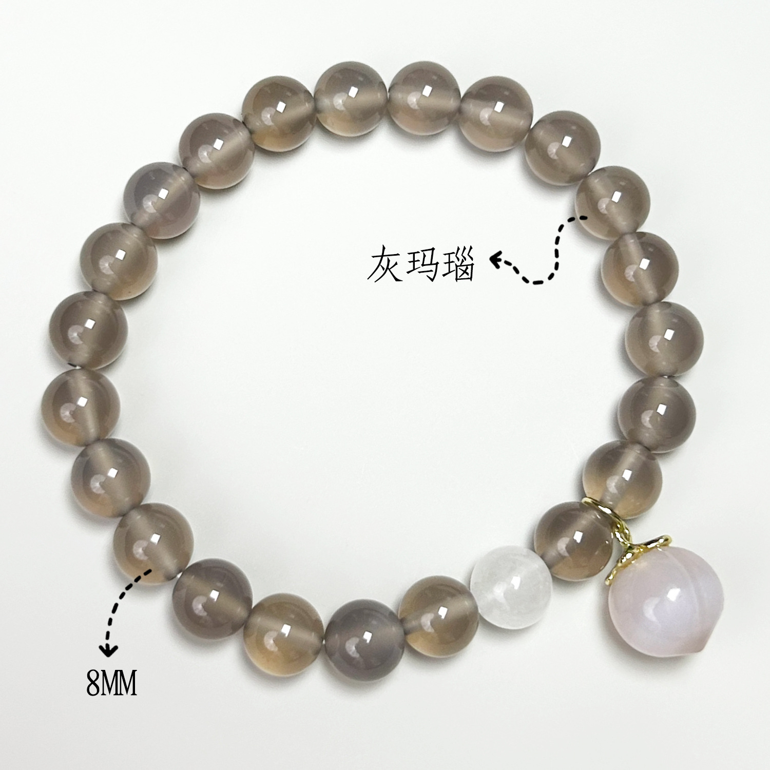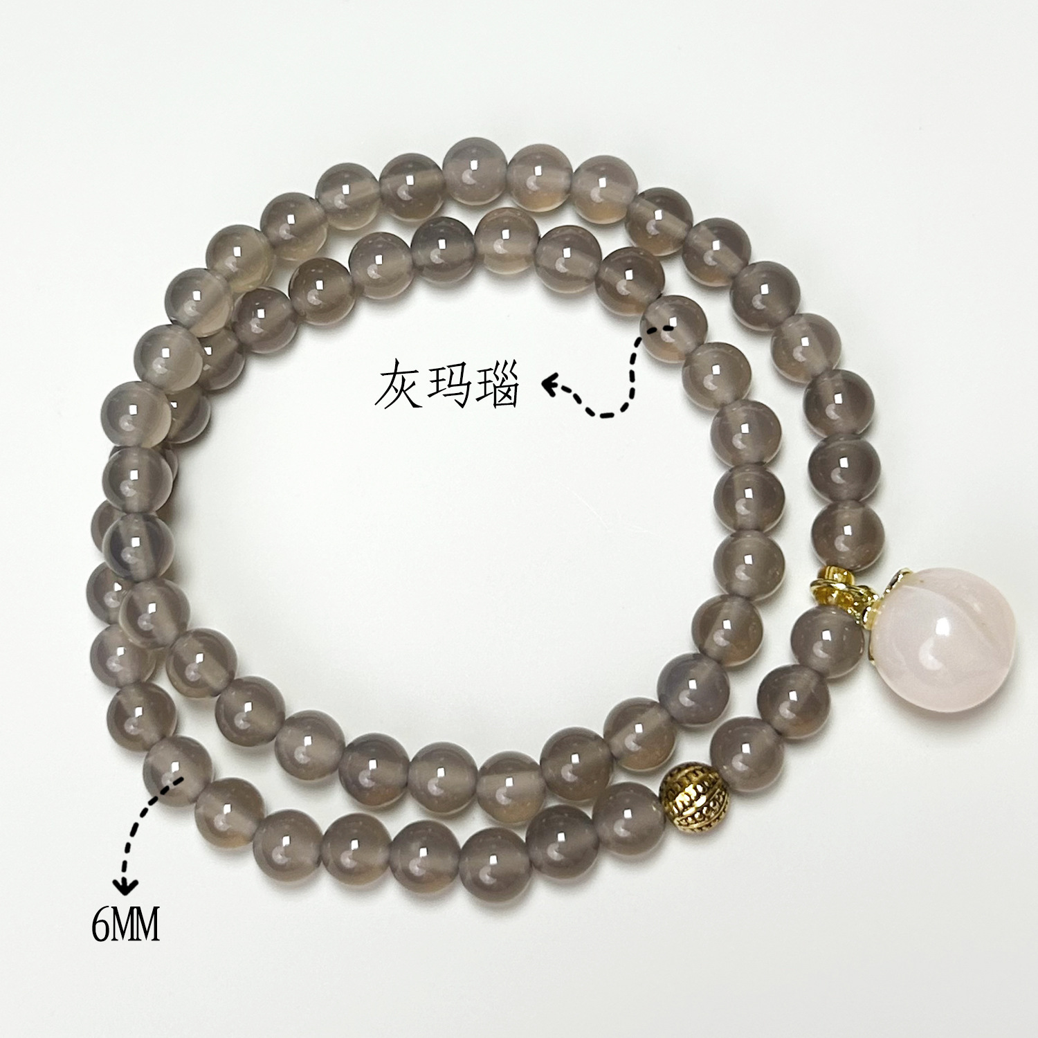 Grey agate double-ring Salt Source Small peach (6mm)