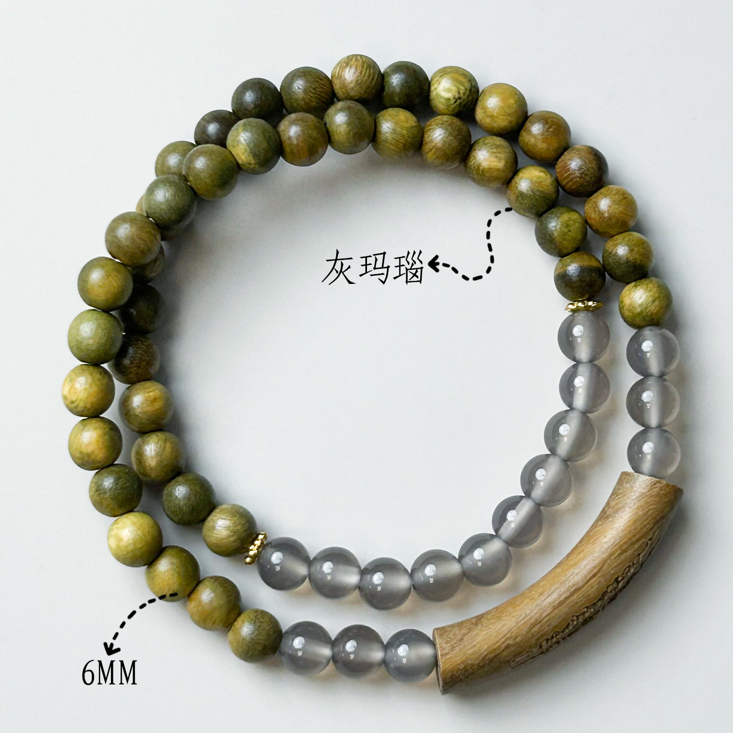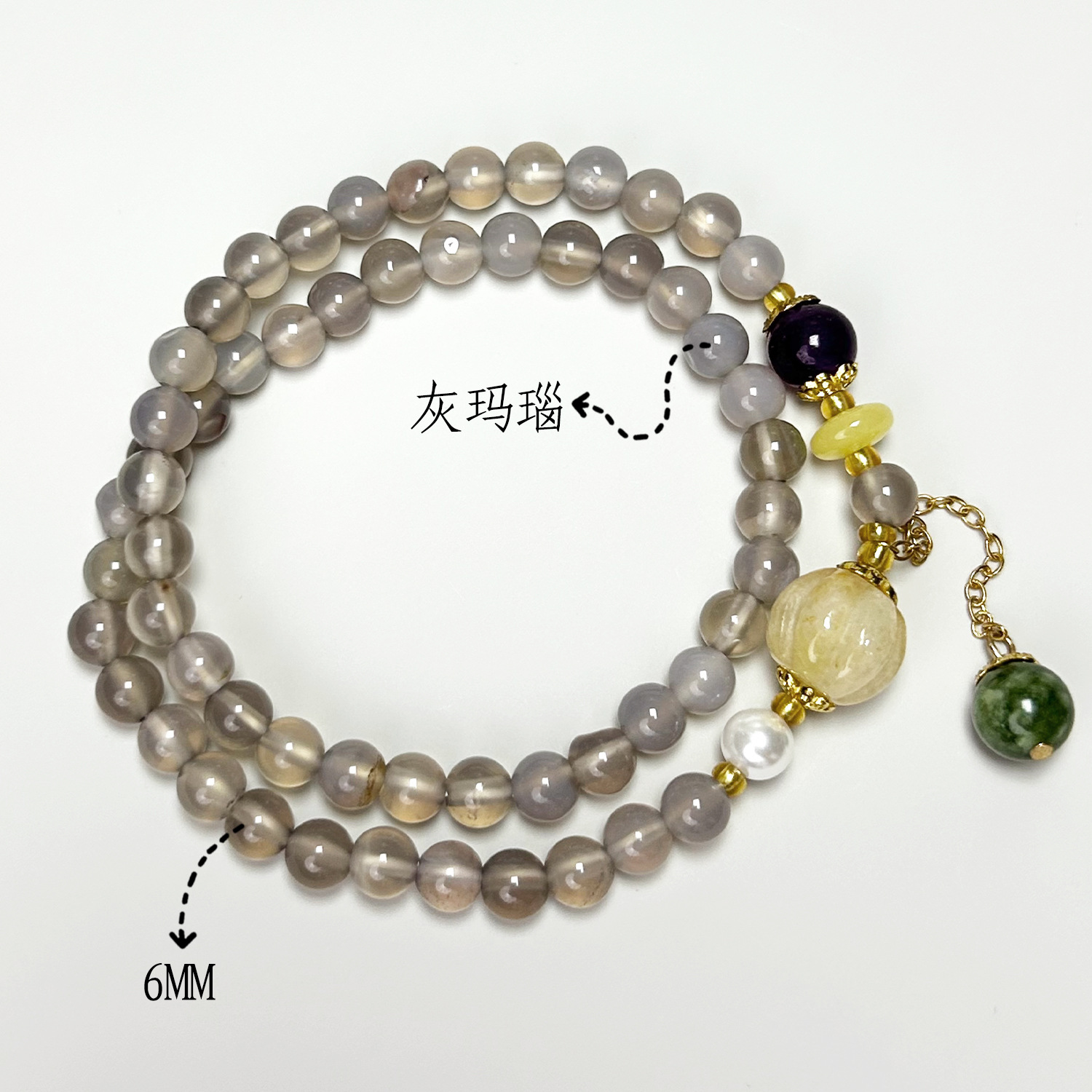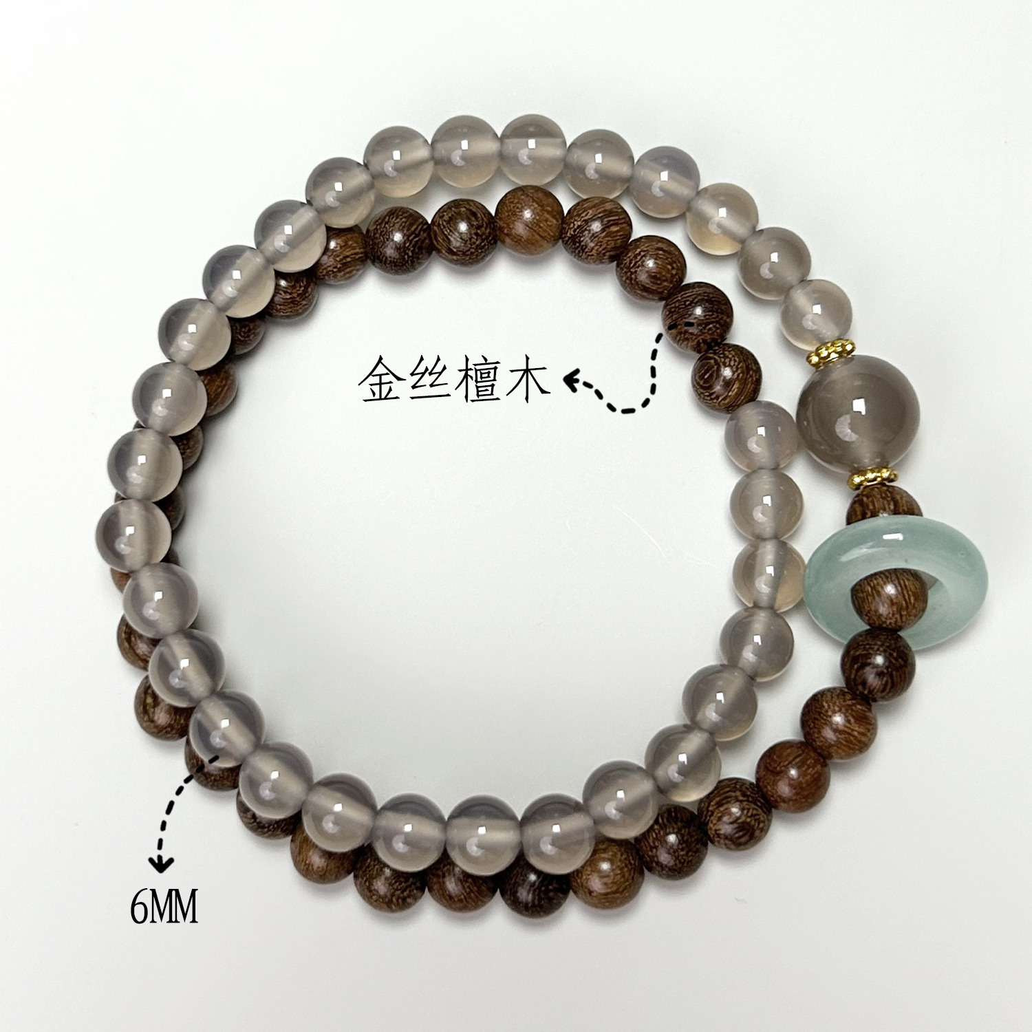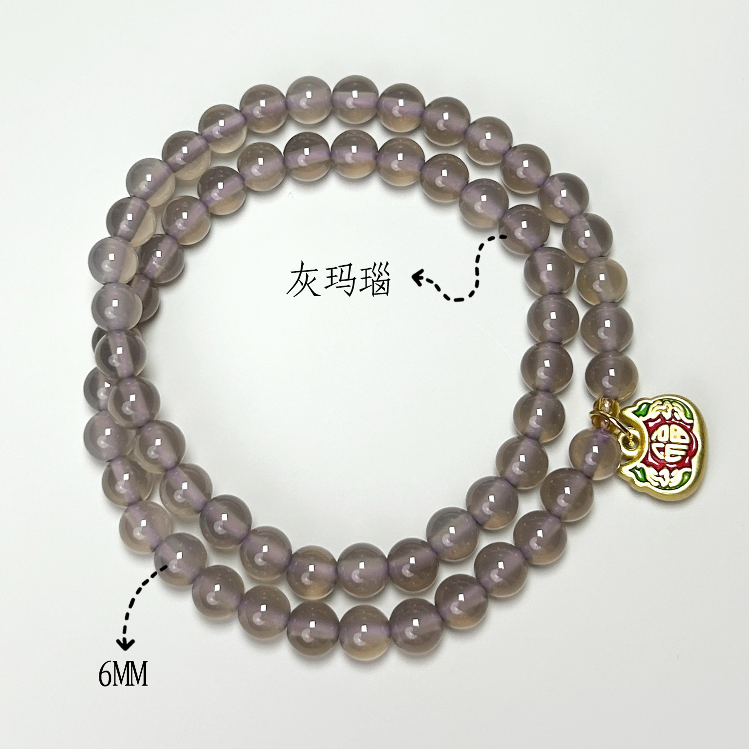 Grey agate double-ring small Fortune plaque (6mm)