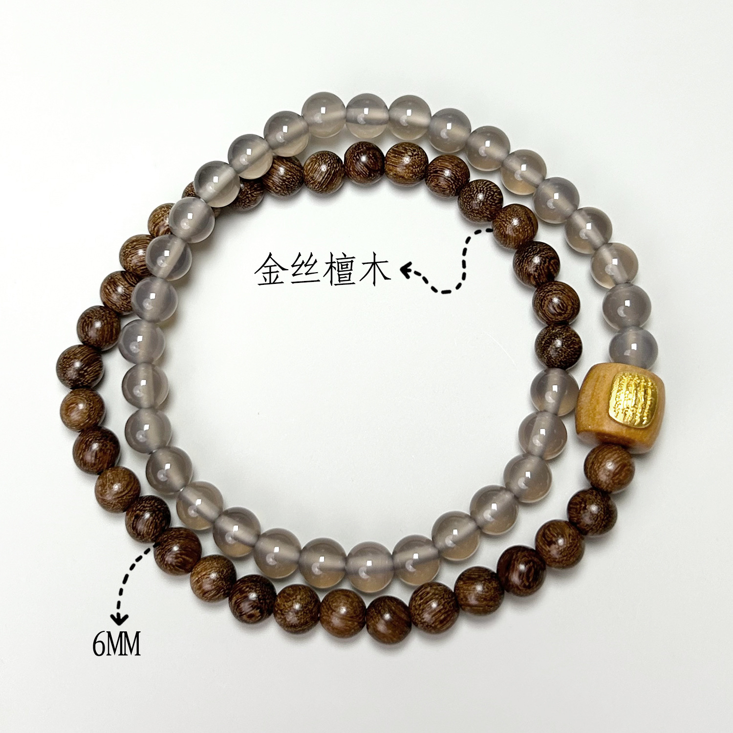 Double rings of golden thread sandalwood grey agate (6mm)