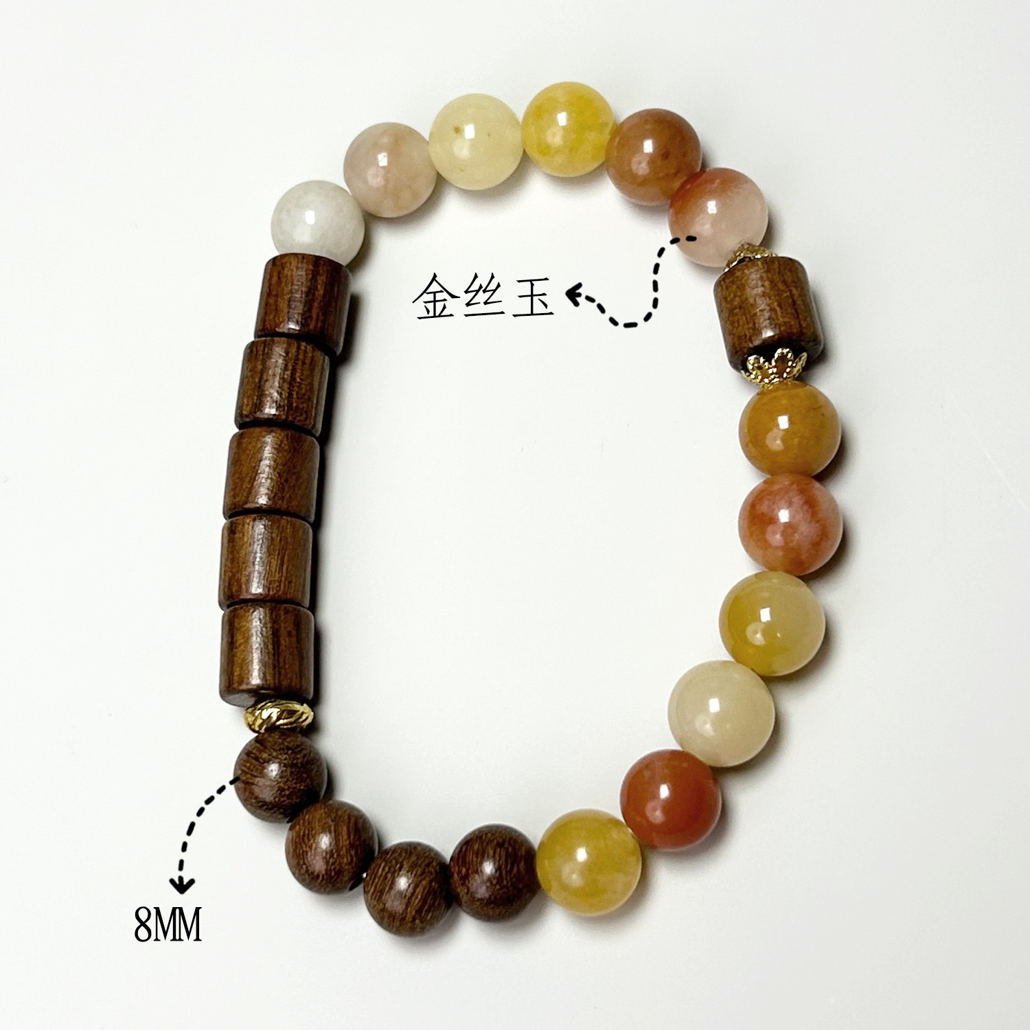 Golden Thread Jade Sandalwood style (8mm)