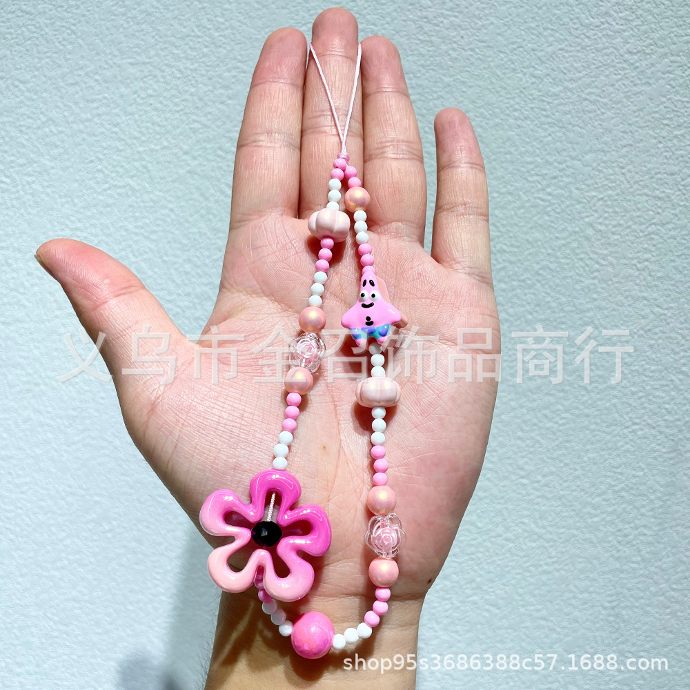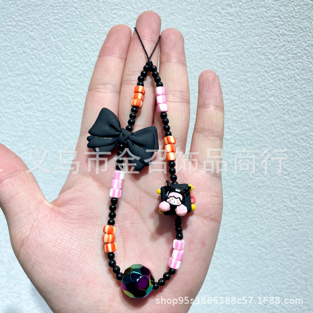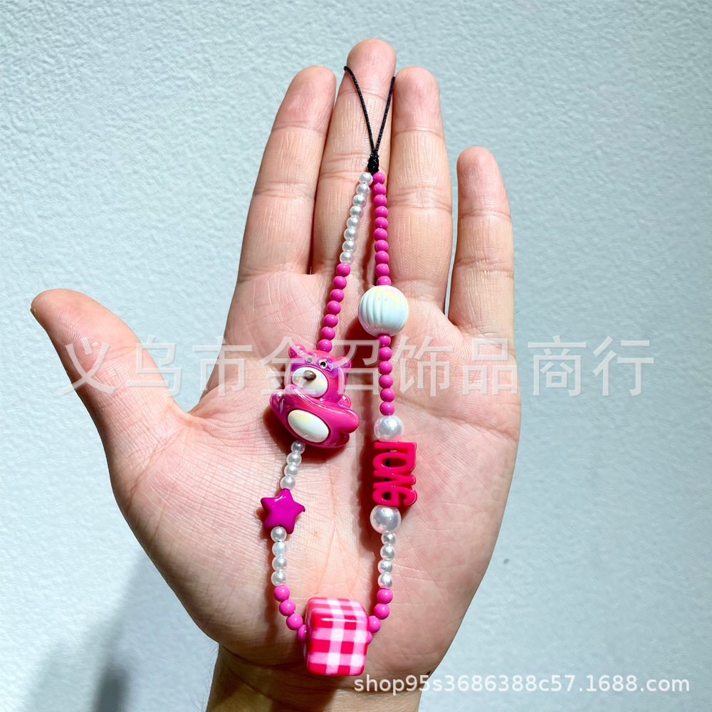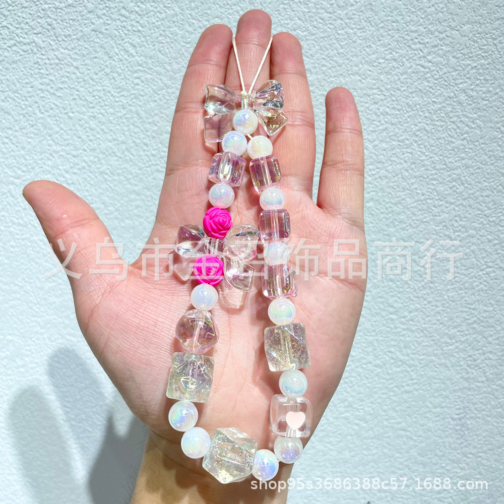 Xiaohongshu's new mobile phone chain, creative cream bow, diy hand-painted beaded phone case, lanyard, pendant and accessory