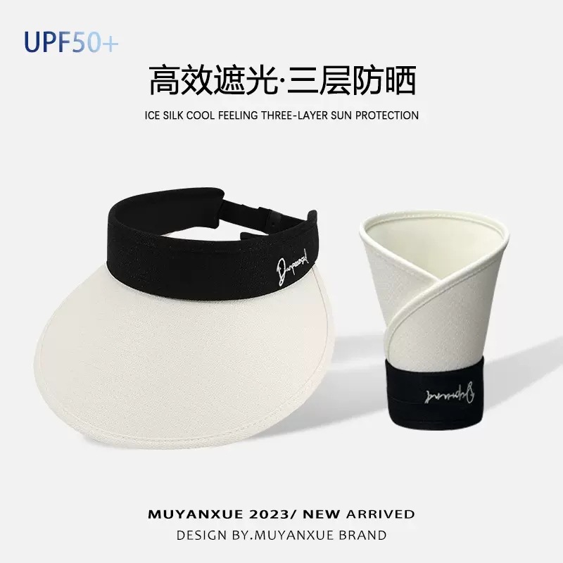 Xiaoxiangfeng open-top sun hat for women, summer UV protection cycling sun hat with large brim and foldable sun hat