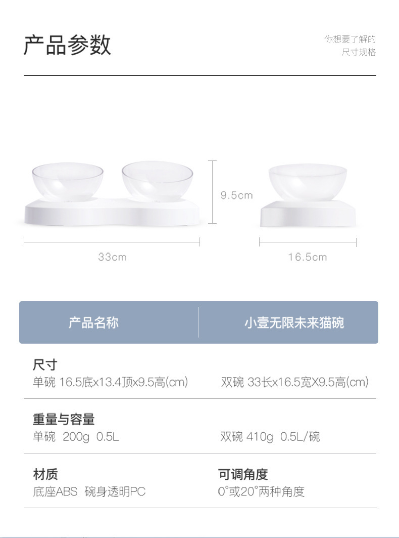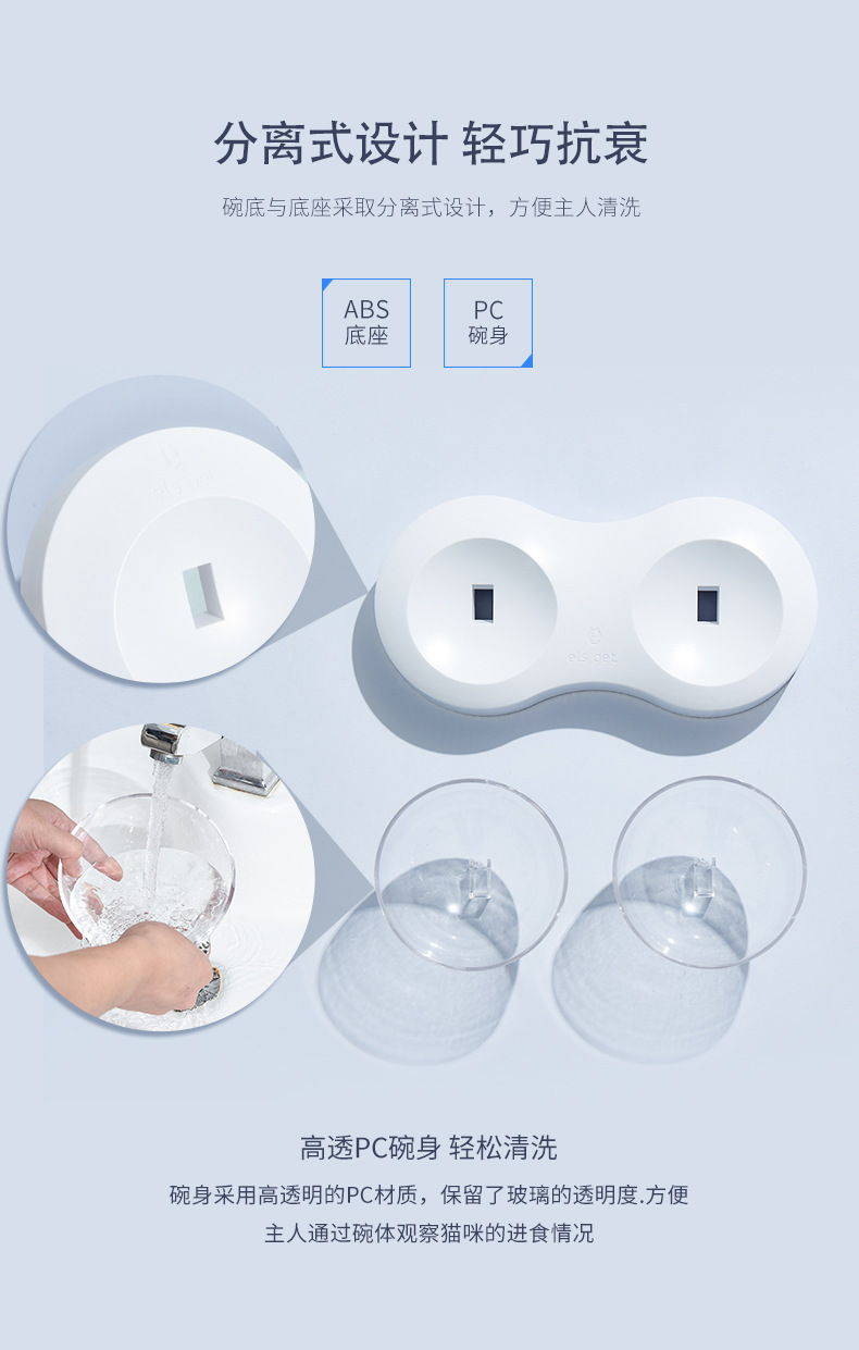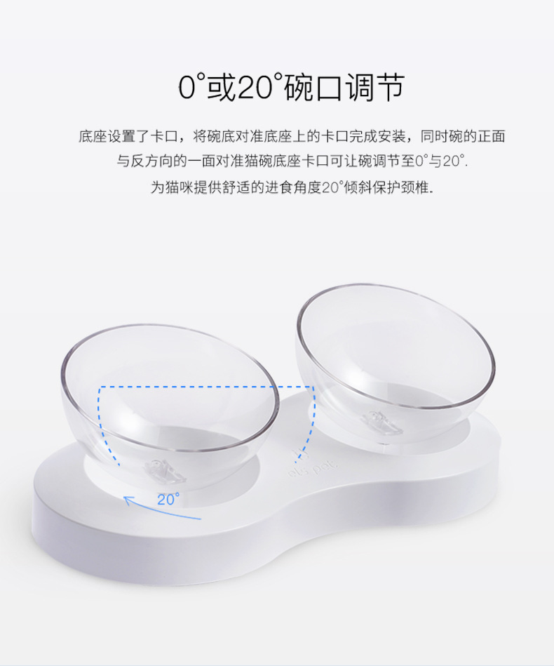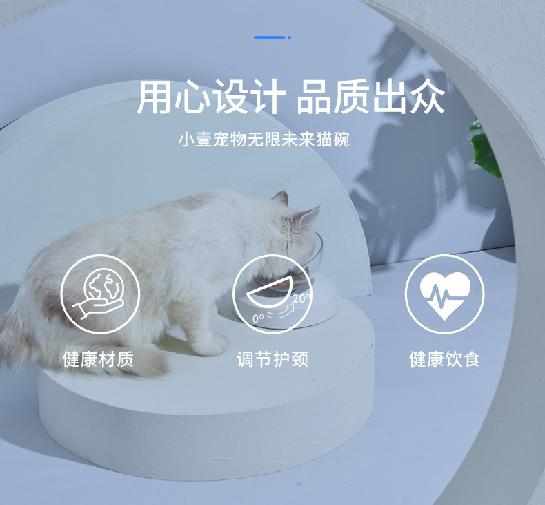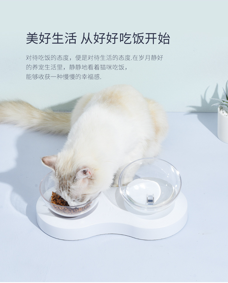 Xiaoyi's new cat bowl is an adjustable 20° slanted transparent pet product, a cat food bowl, a water dispenser, and a double bowl for water, food and cats