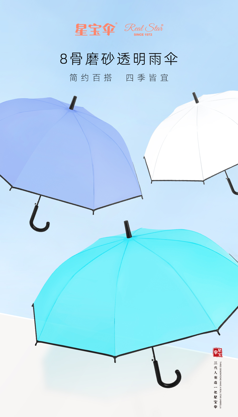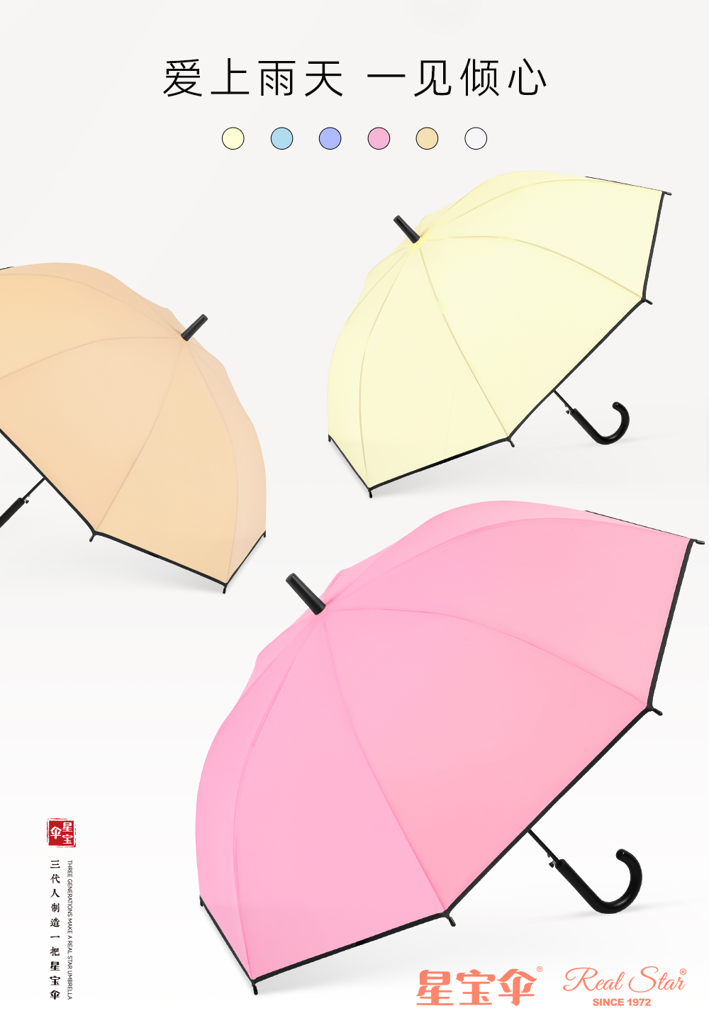 Xingbao Umbrella RST957 solid color umbrella, long handle curved hook, women's umbrella, black edge, enlarged umbrella, long umbrella, macaron color umbrella, factory stock