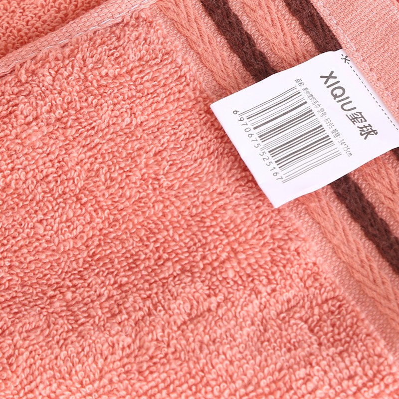 This pure cotton towel is in a solid color with a segment pattern. It features a novel design, is soft and absorbent, and does not fade or shed. It is a gift towel for face wash towels and a ball towel. This towel has good water absorption performance, thick loops, and is environmentally friendly with no shedding or fading. It is a high-end gift for enterprises and companies, a wedding return gift, and a festival gift towel. Customized enterprise logos are available (embroidery costs are additional).