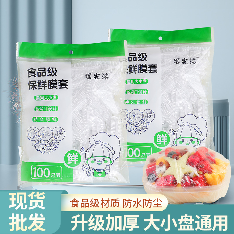 Xunjiajie Food Household Grade dust-proof and insect-proof elastic and tight disposable cling film covers for supermarkets, 100 or 200 pieces