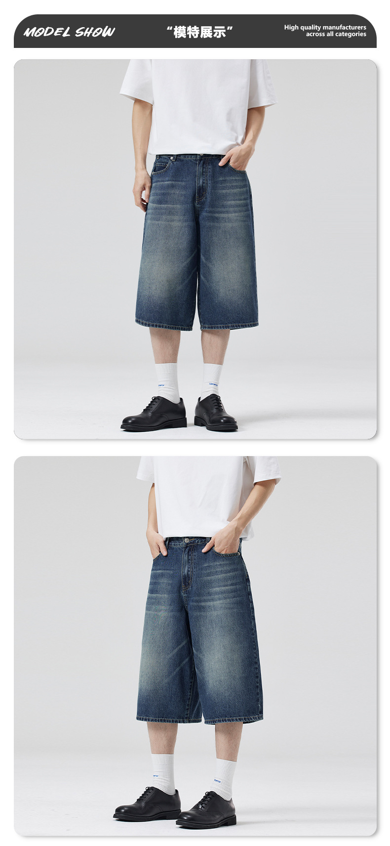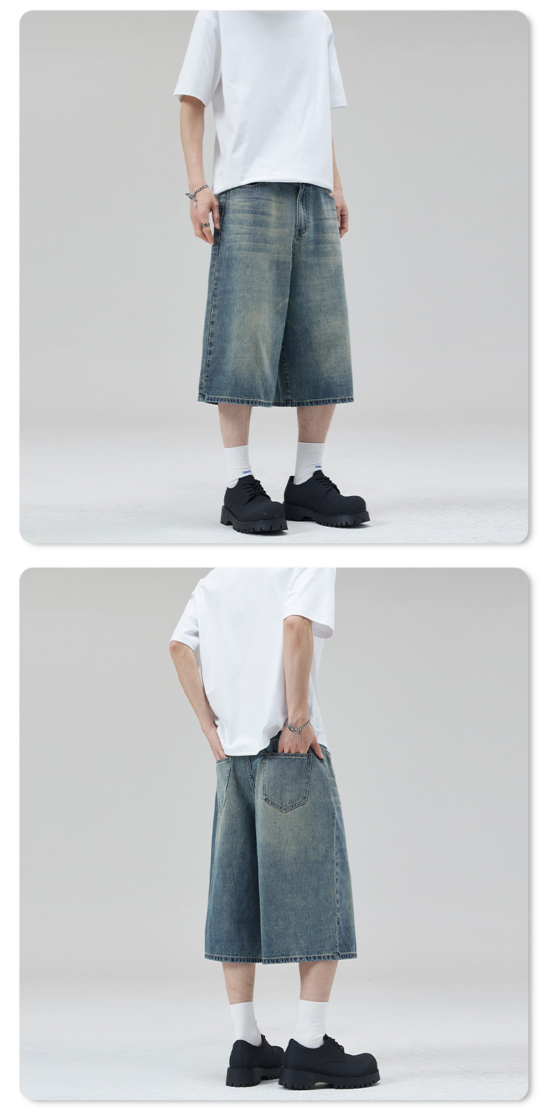 xxbro Men's Wear # Summer Versatile Men's Shorts, High street capsized pants, distressed wide-leg cat beard Loose jeans