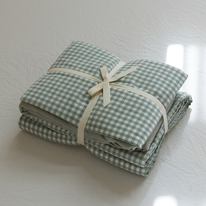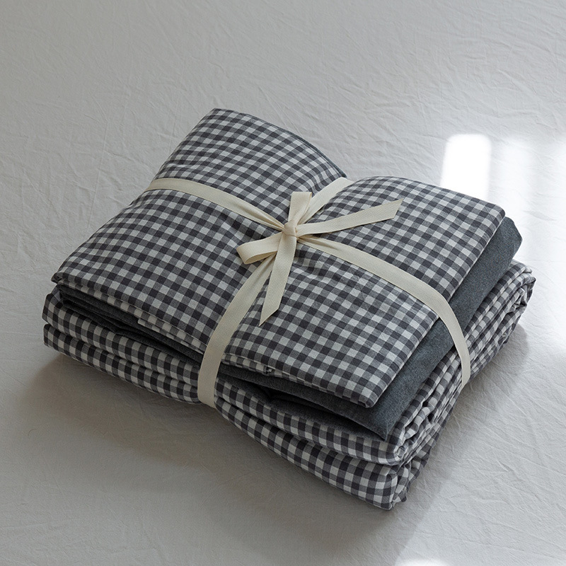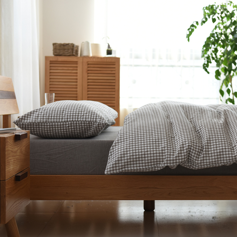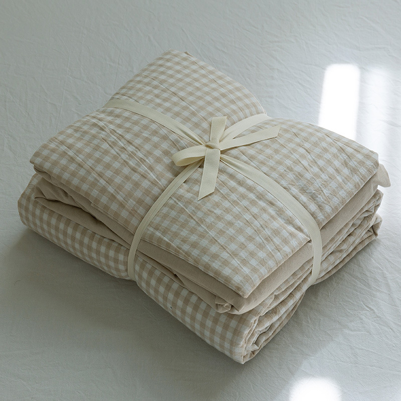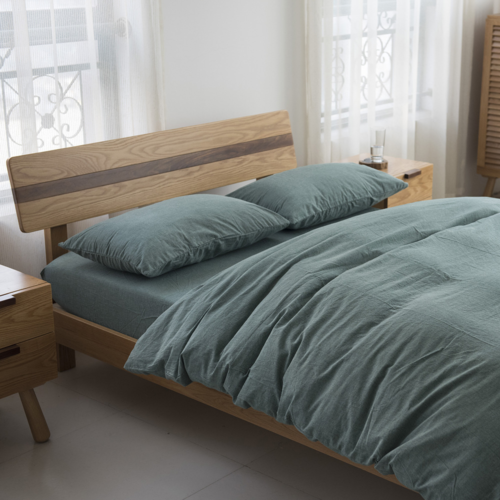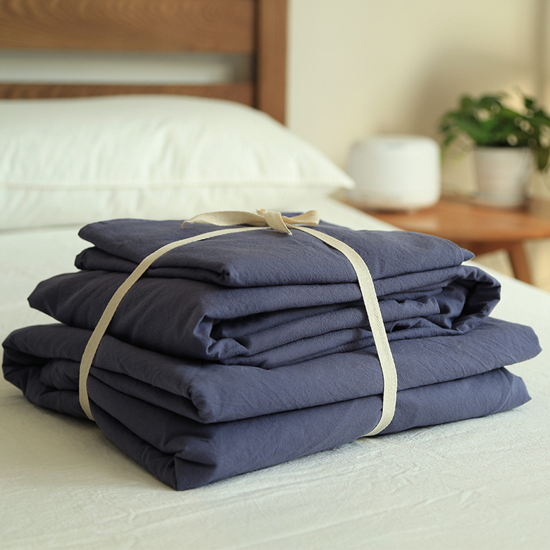 XXP4 Japanese-style pure cotton washed cotton and linen four-piece set, simple and artistic plain color duvet cover, double bed sheet and bedding