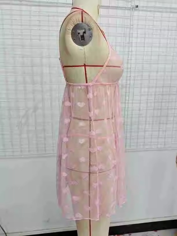 YANNI cross-border supply of European and American export sex underwear, sexy women's mesh fabric, heart-shaped see-through nightdress, sex suit wholesale