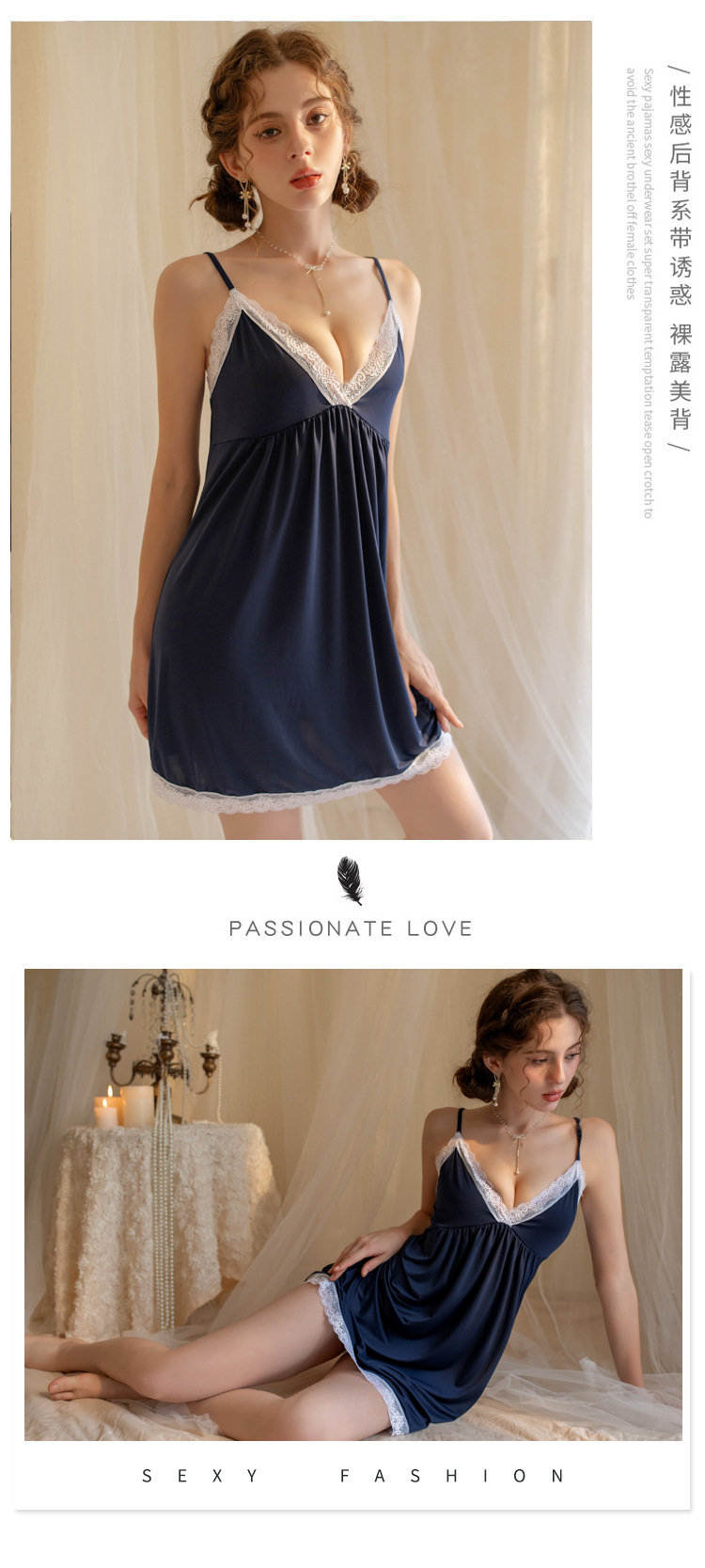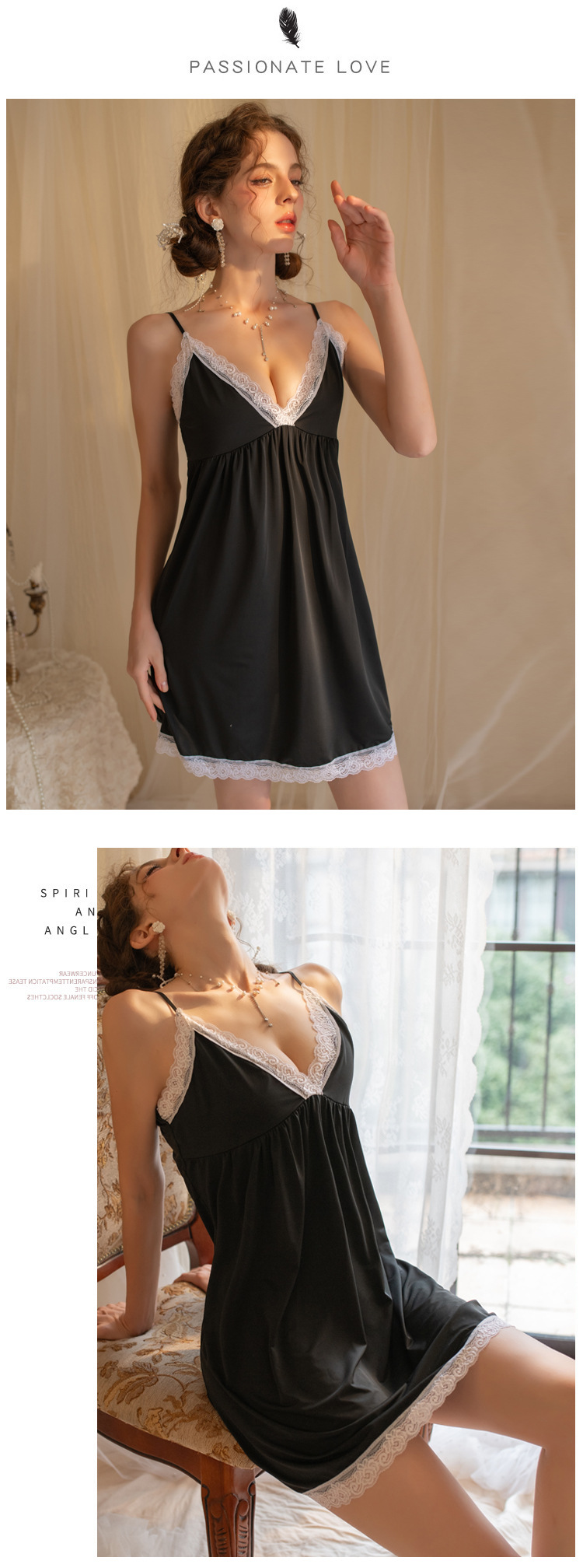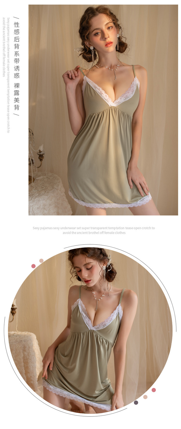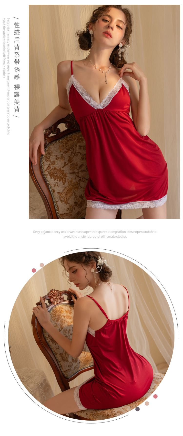 YANNI's new romantic pajama for women, with a hot deep V-neck, halter straps, seductive lace trim, and a high-end, pure and sensual style, backless sleeping dress