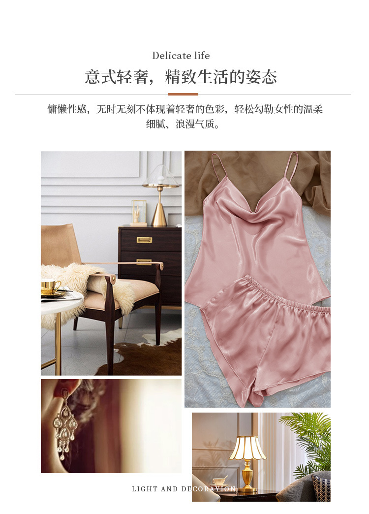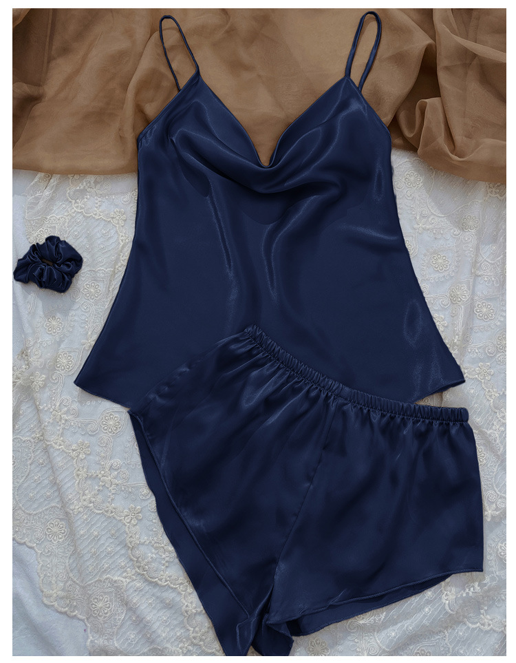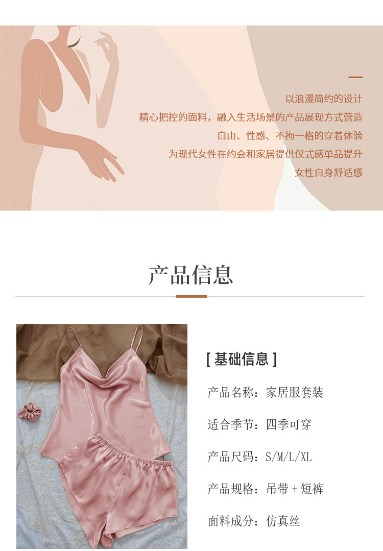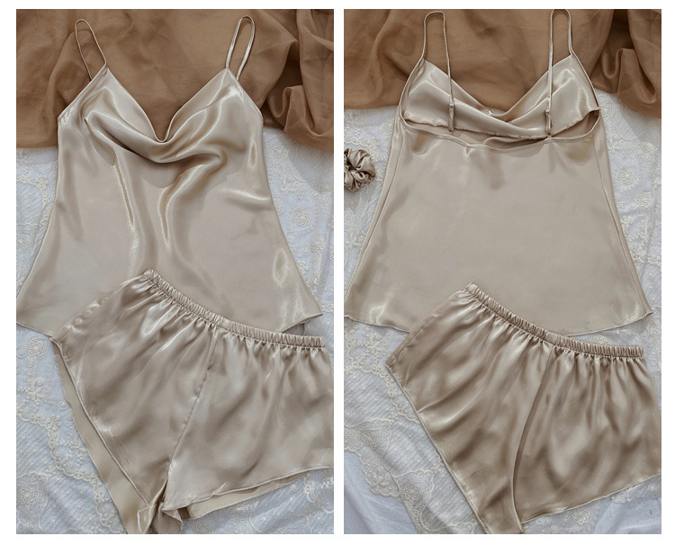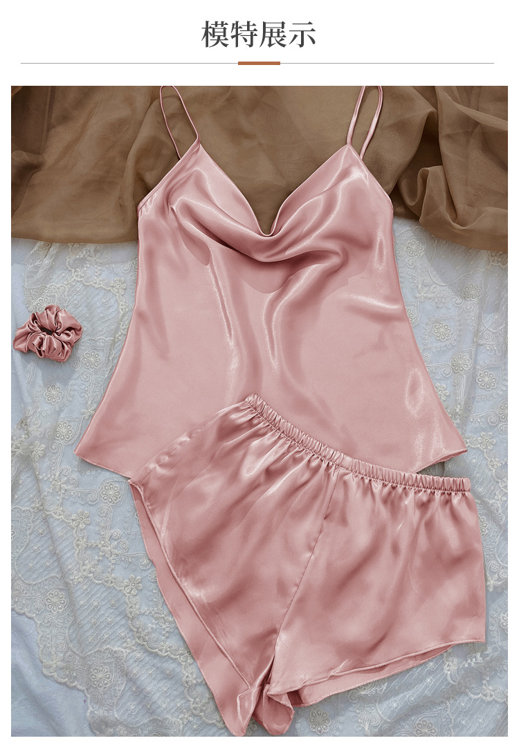 YANNI's new solid-color ice silk pajamas, women's thin home halter shorts set, sexy and light two-piece home wear, export wholesale to the Middle East and South America