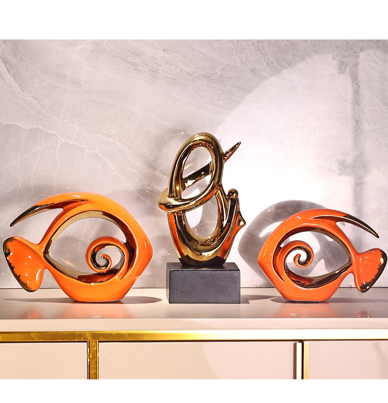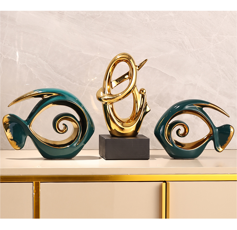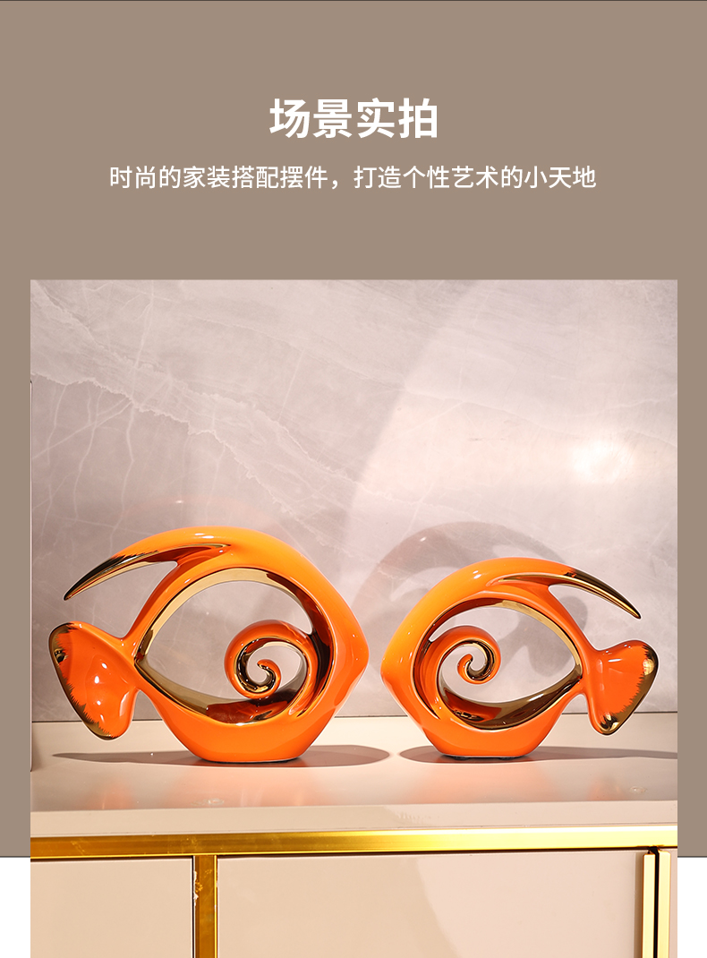 "Yearly Abundance" decorative items, living room ceramic fishwork artworks, modern light luxury home TV, wine cabinet, soft decoration