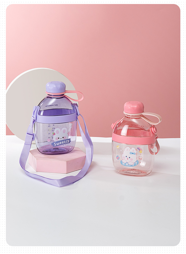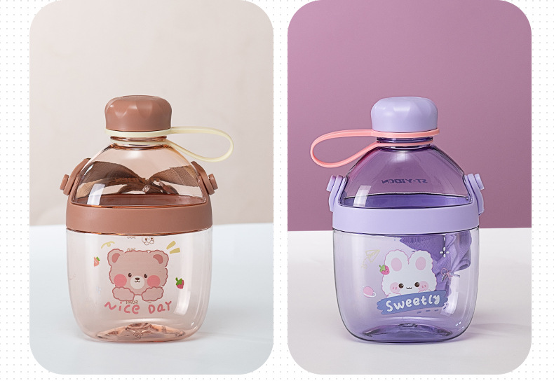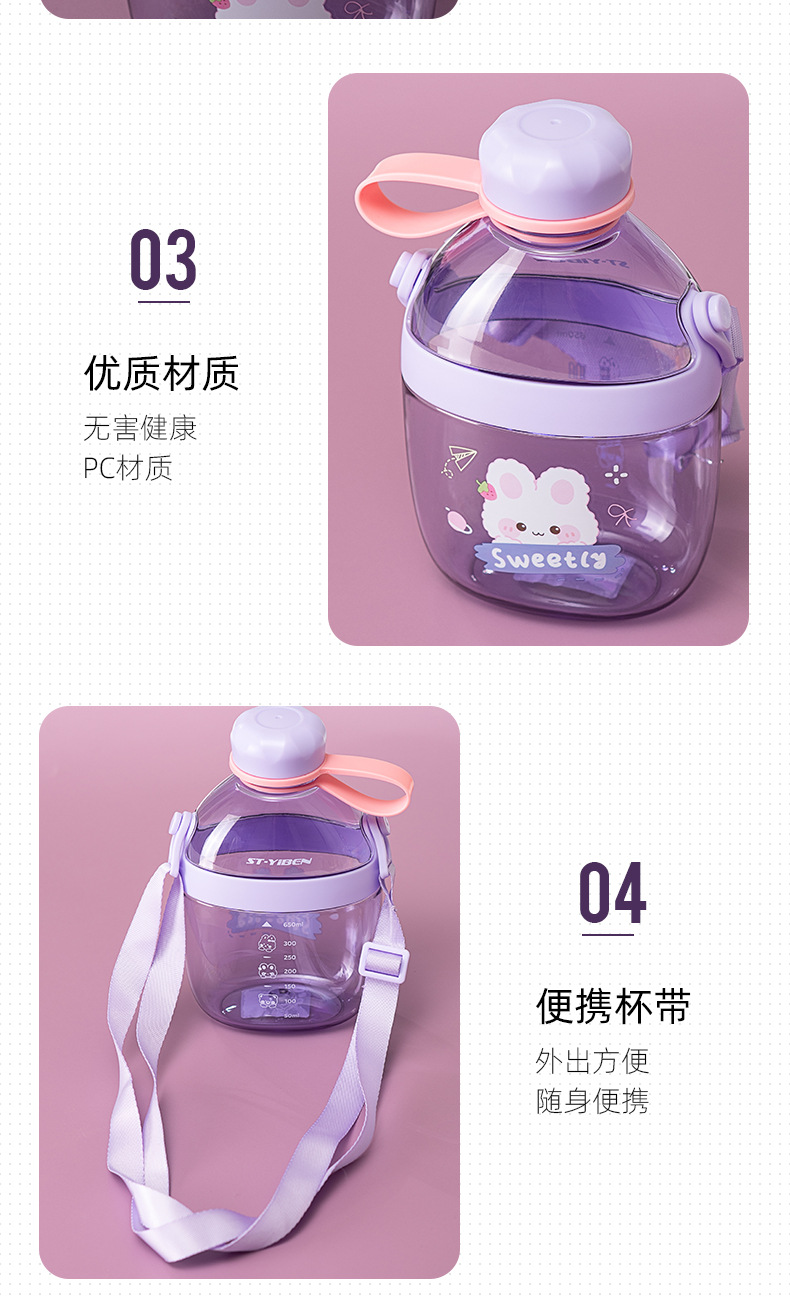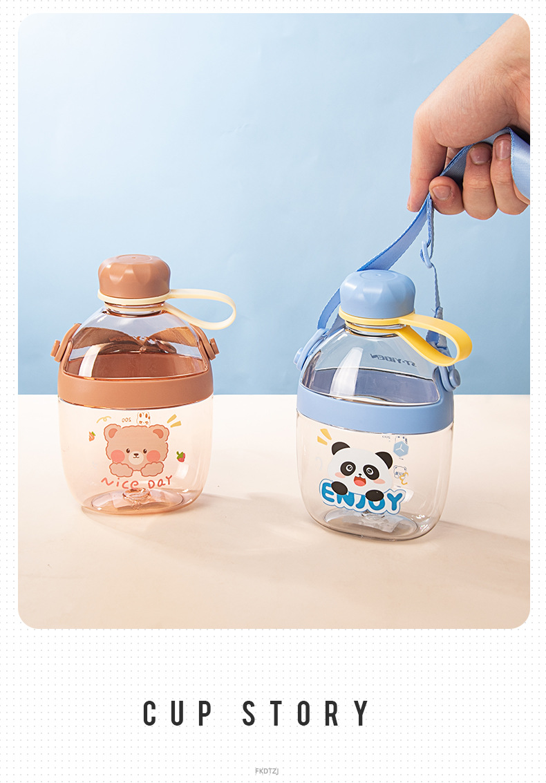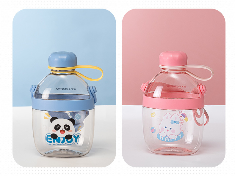 Yiben large-capacity square plastic cup, cute and high appearance level, summer children's straw, large-bellied cup, outdoor portable water bottle