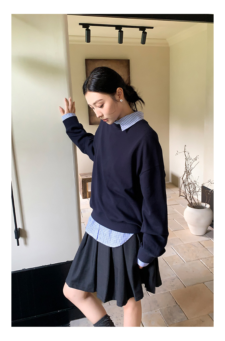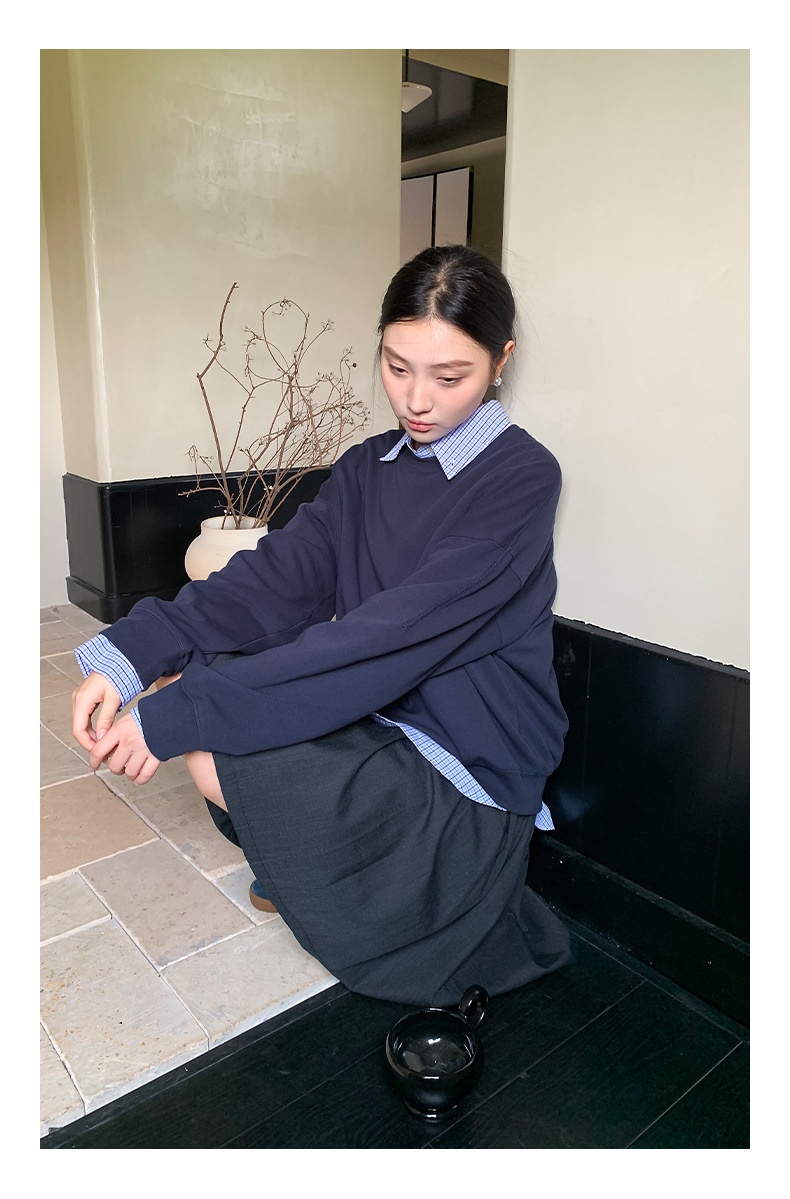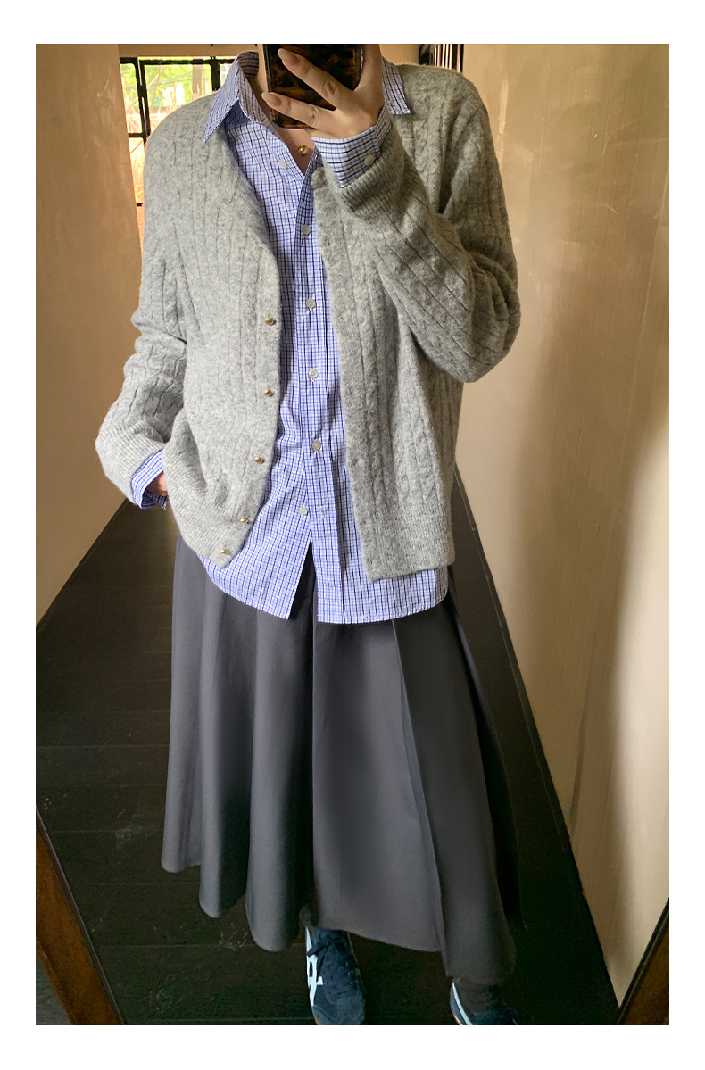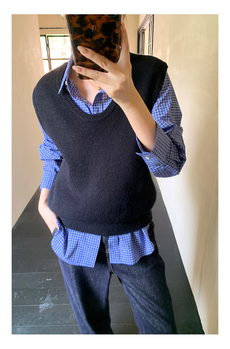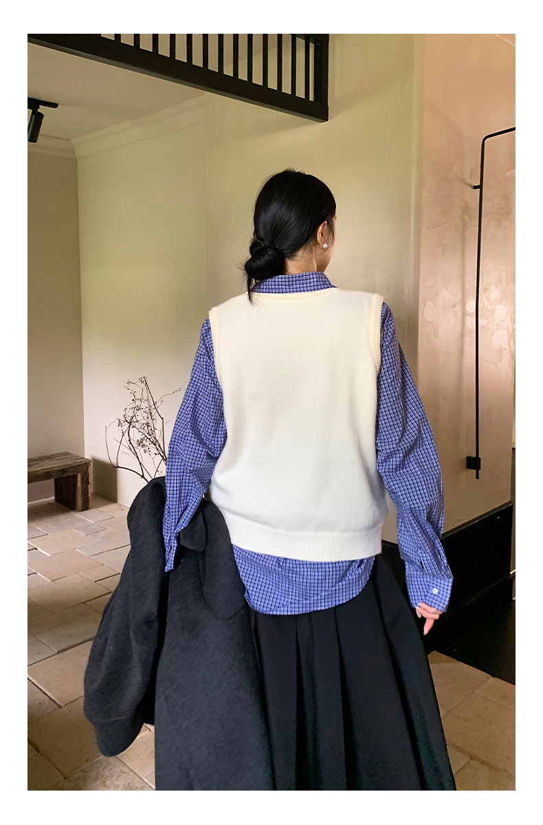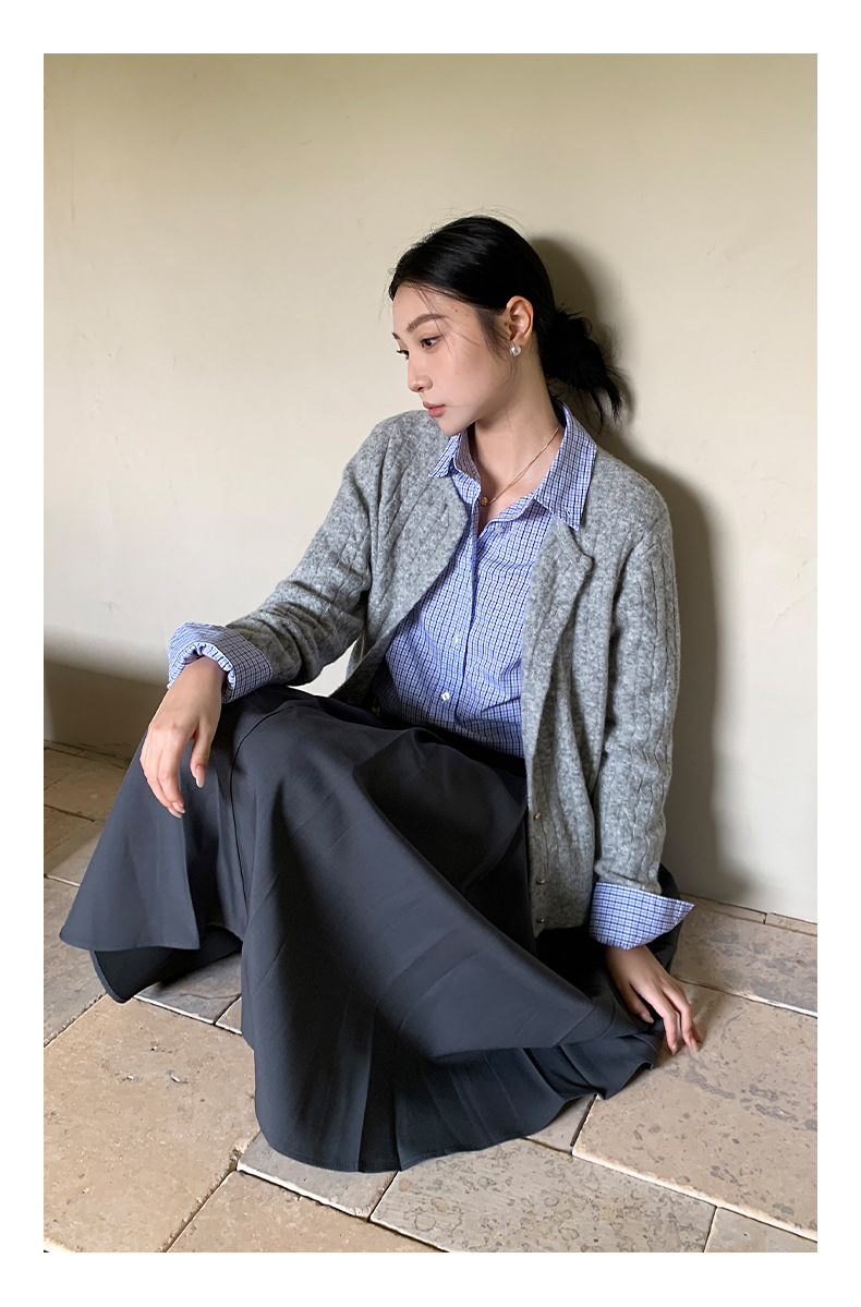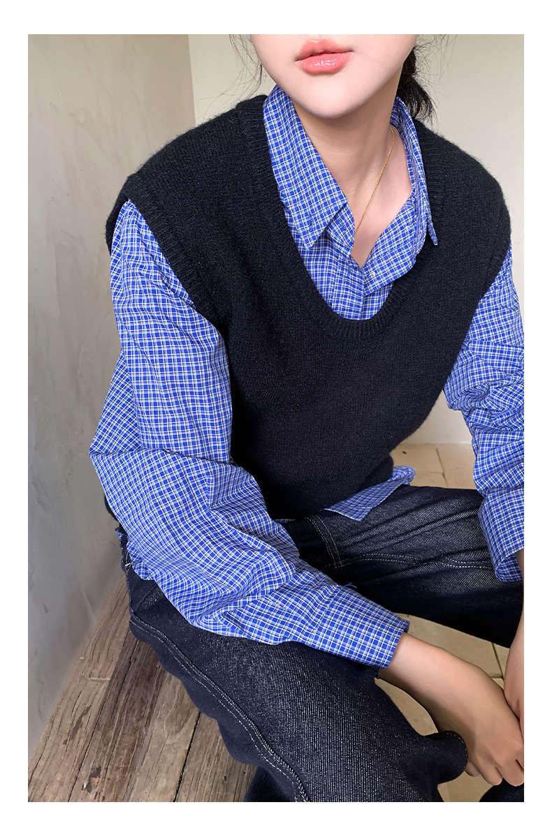 "Yiershan Korean style MIU style Teng Jie Dongdaemun Plain checkered shirt Women long-sleeved lapel cotton shirt.