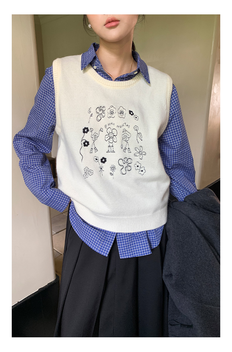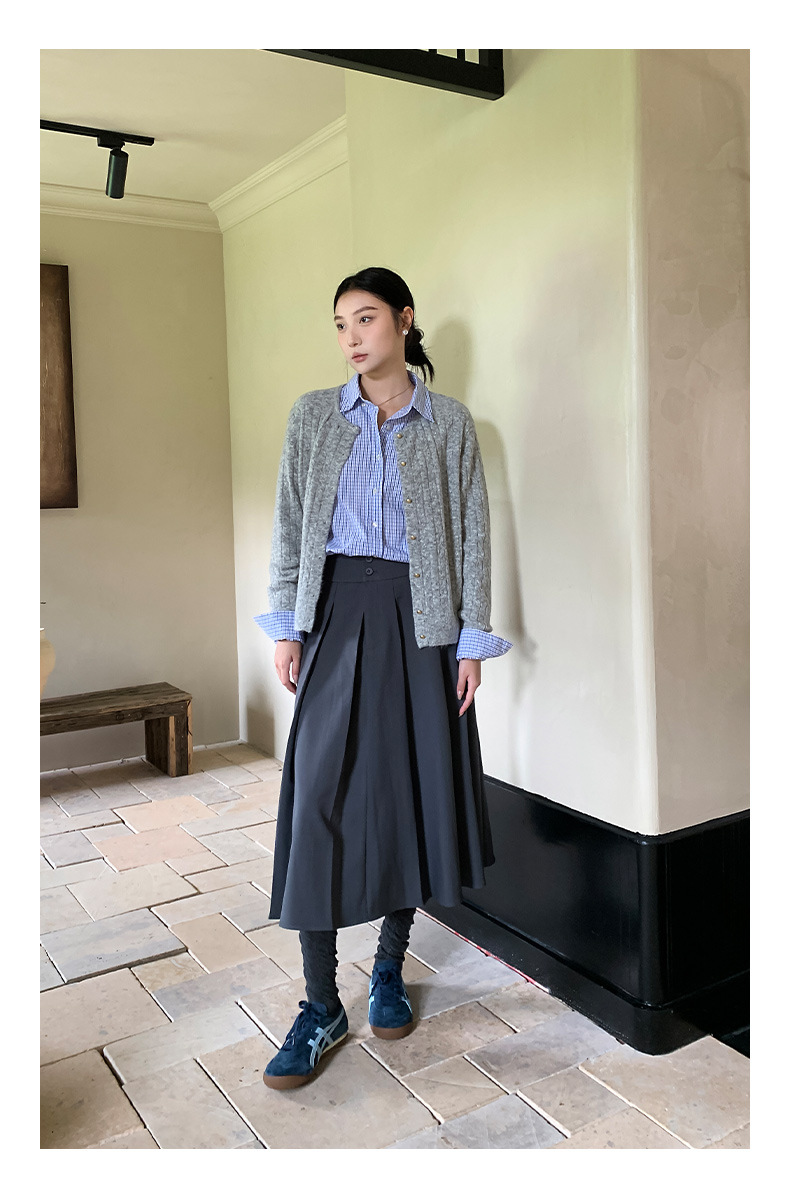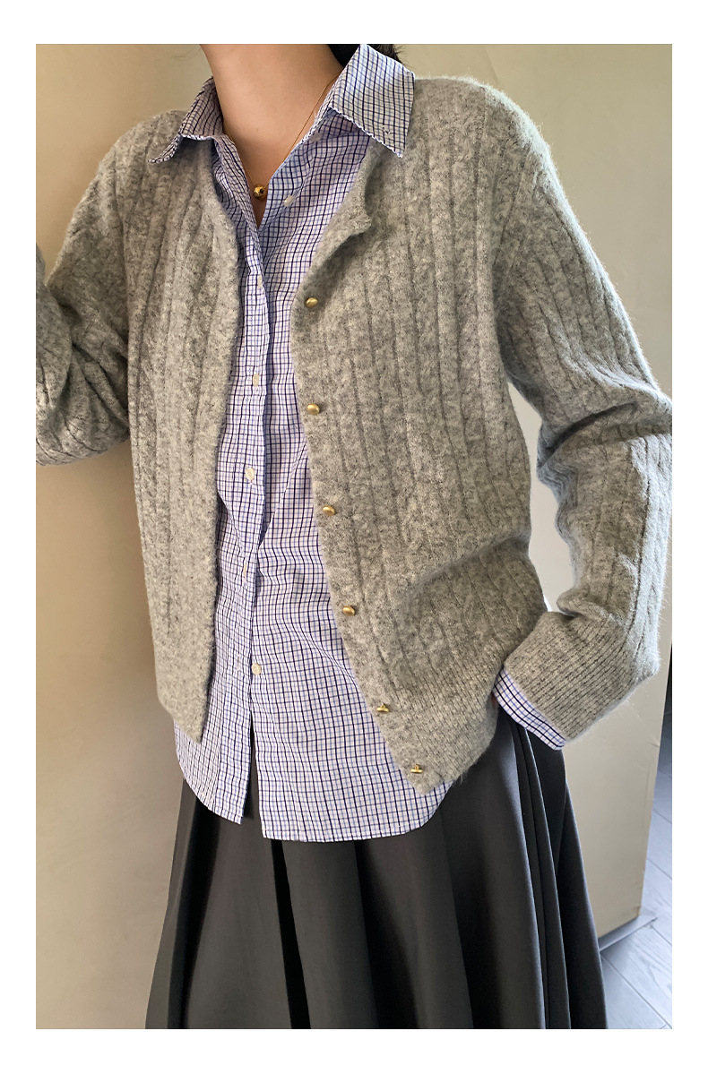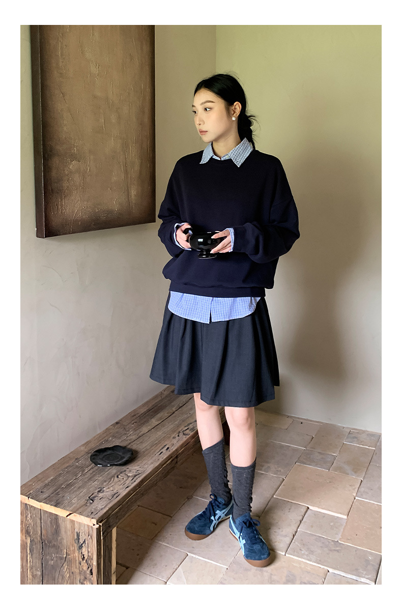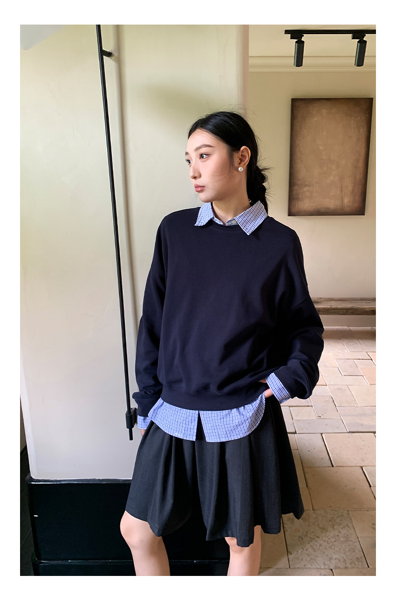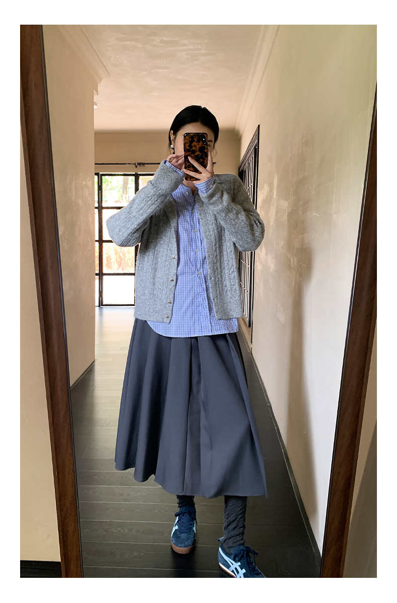 "Yiershan Korean style MIU style Teng Jie Dongdaemun Plain checkered shirt Women long-sleeved lapel cotton shirt.