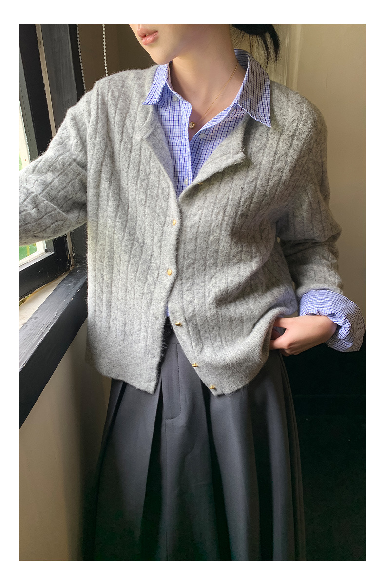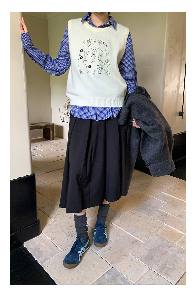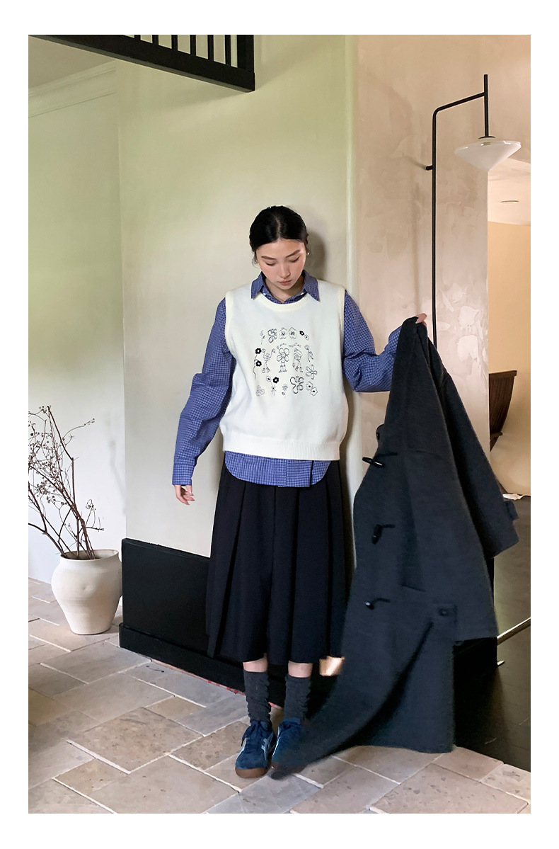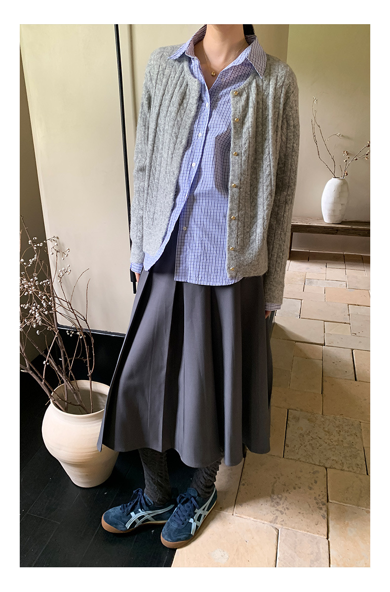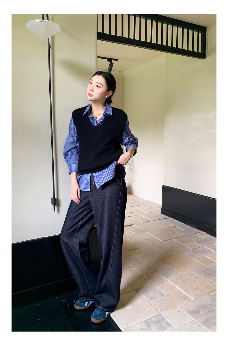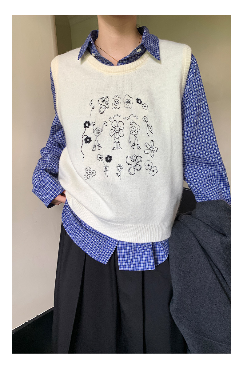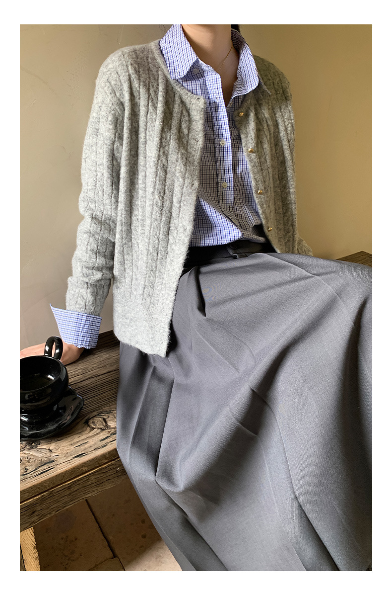 "Yiershan Korean style MIU style Teng Jie Dongdaemun Plain checkered shirt Women long-sleeved lapel cotton shirt.