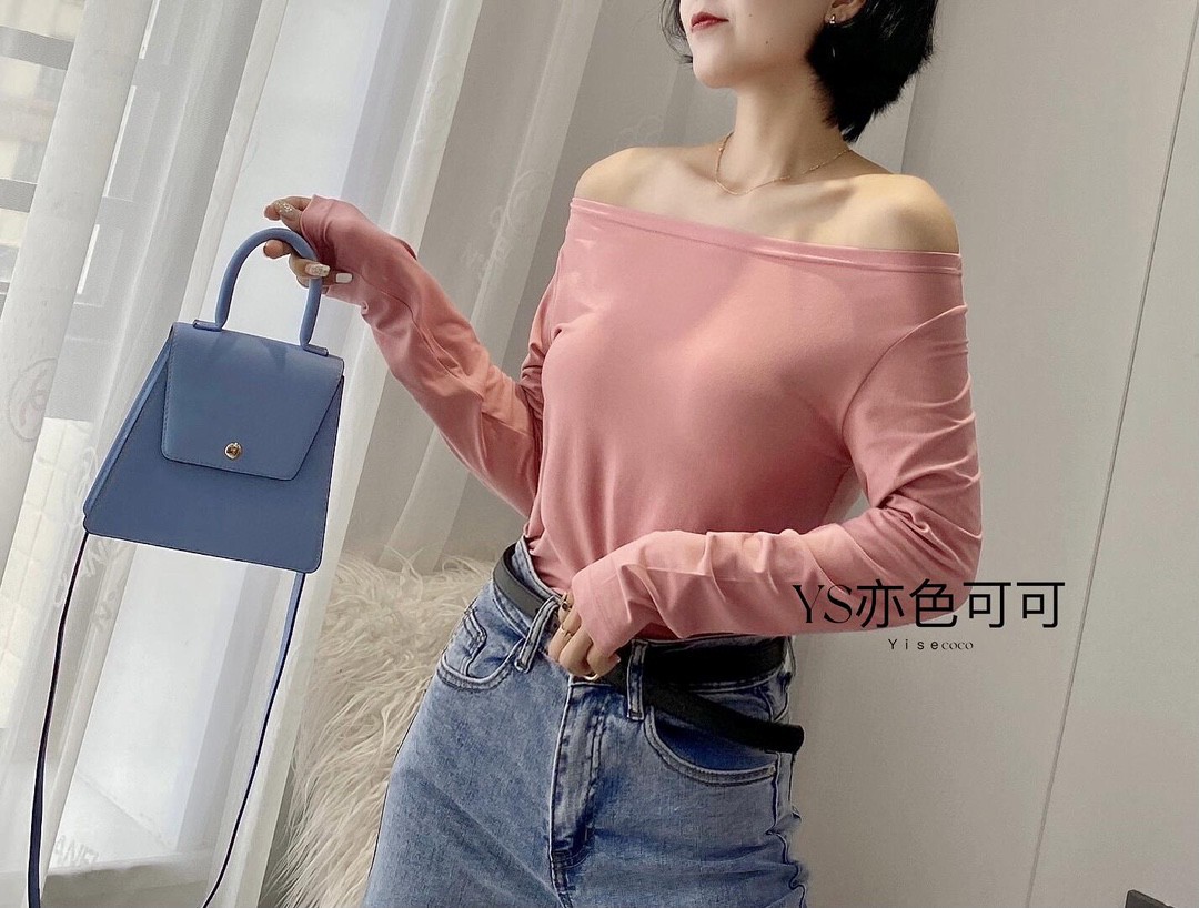 Yise Coco one-neck base layer for Women 2021 Early Autumn New style Japanese sweet and sexy thin long-sleeved top