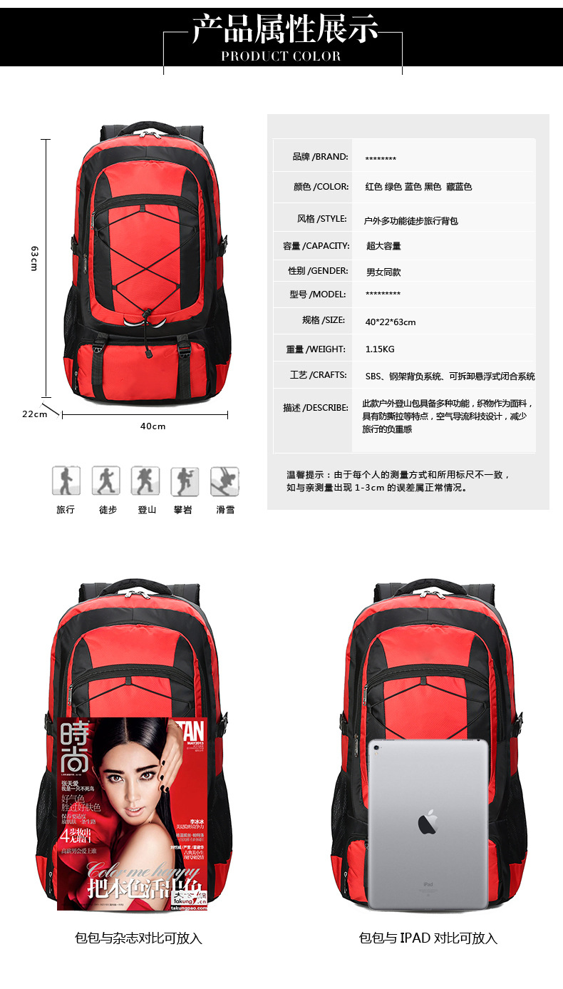 Yitu Cross-border Supply Outdoor Sports Backpack, men's multi-functional Hiking bag, waterproof, large capacity, logo