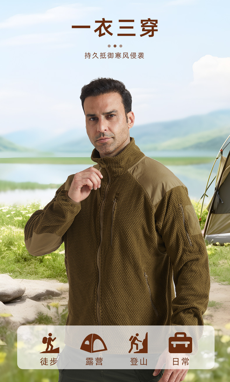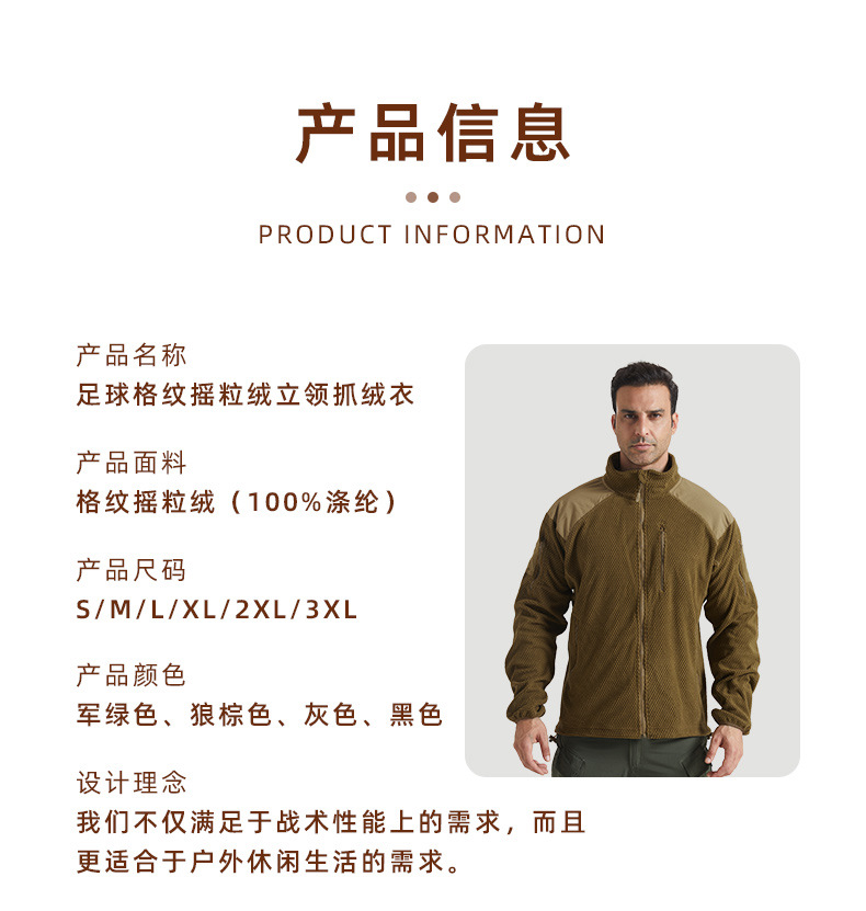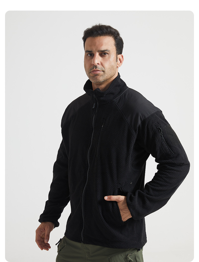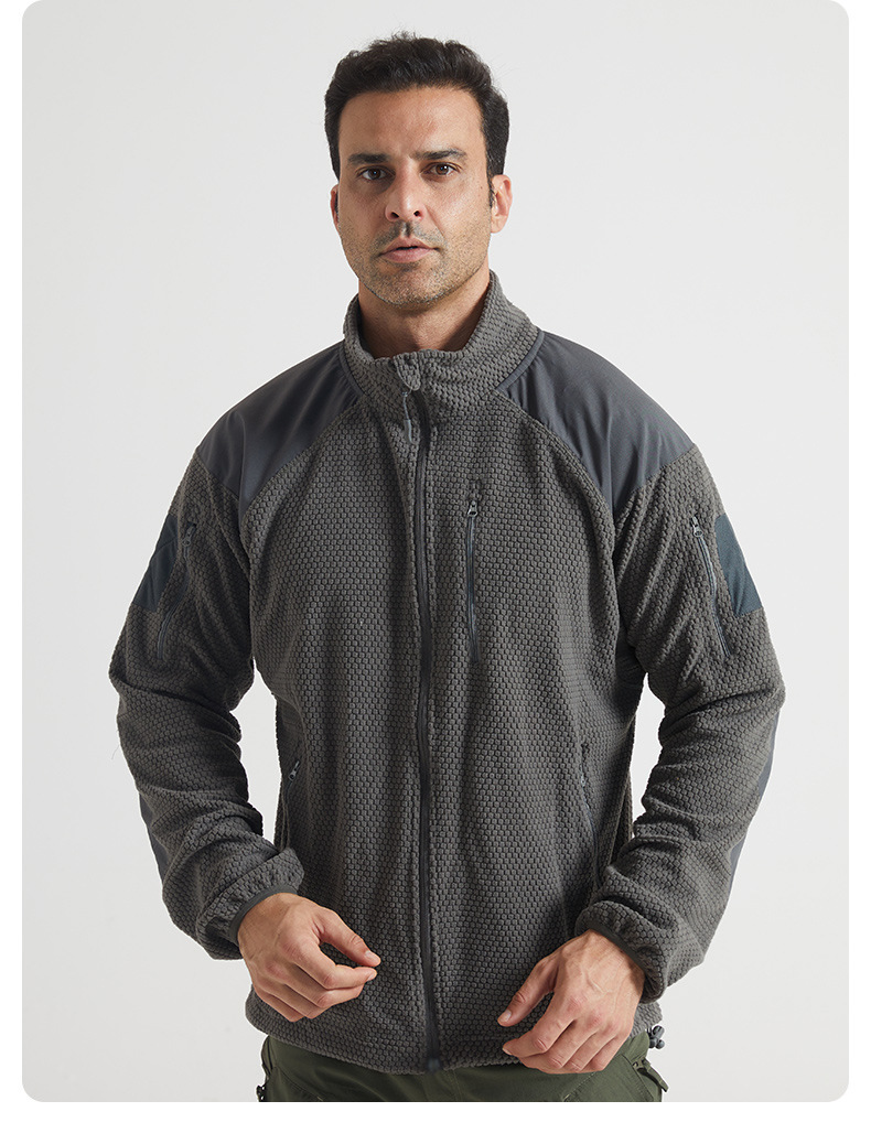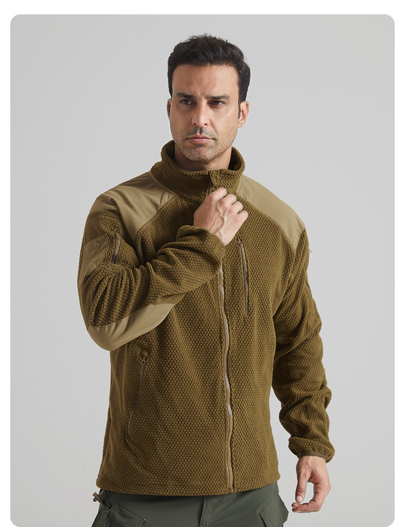 Yitu football grille fleece outdoor sports stand-up collar fleece jacket, tactical warm jacket, men's windbreaker inner liner, for camping