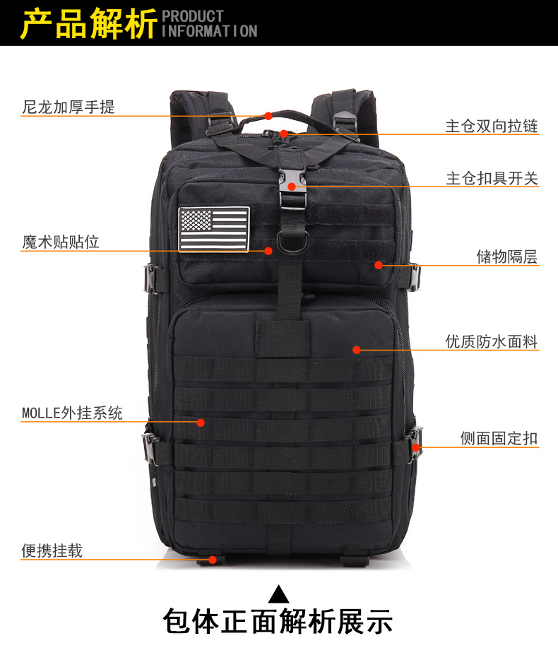 Yitu Men's military backpack for hiking, mountain climbing, cycling and sports, large-capacity outdoor tactical camouflage backpack