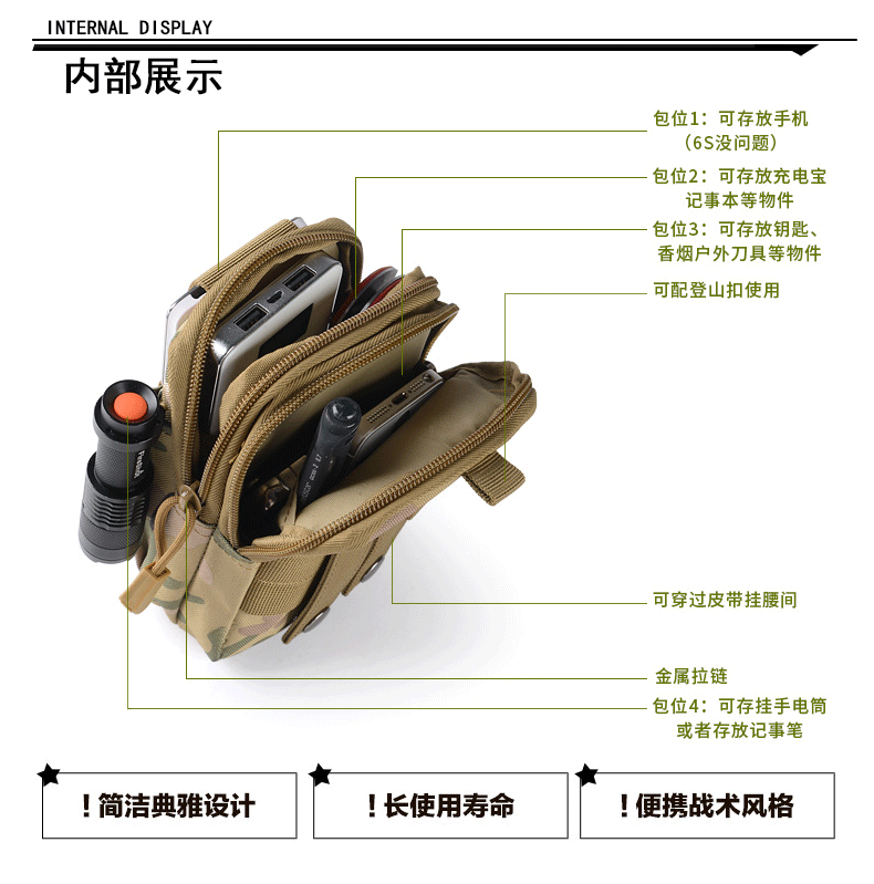 Yitu molle Men's Multi-functional waterproof Camouflage Hiking Bag, Camouflage Outdoor Sports Mobile Phone Tactical Waist Bag