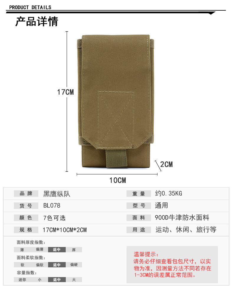 Yitu molle waterproof case Outdoor sports tactical bag, men's waist bag for construction work with a belt, mobile phone bag