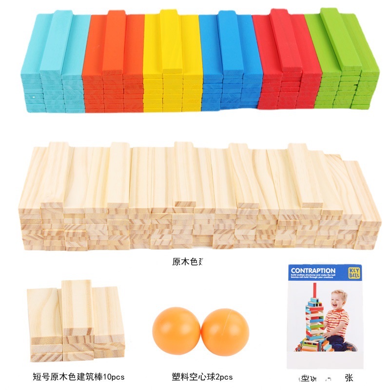 Yiwu Good goods children 's wooden building rods, pure wood strips, wood chips, building blocks, tower 1-3-6 years old intelligence toys, educational toys for early learning, 300 pieces