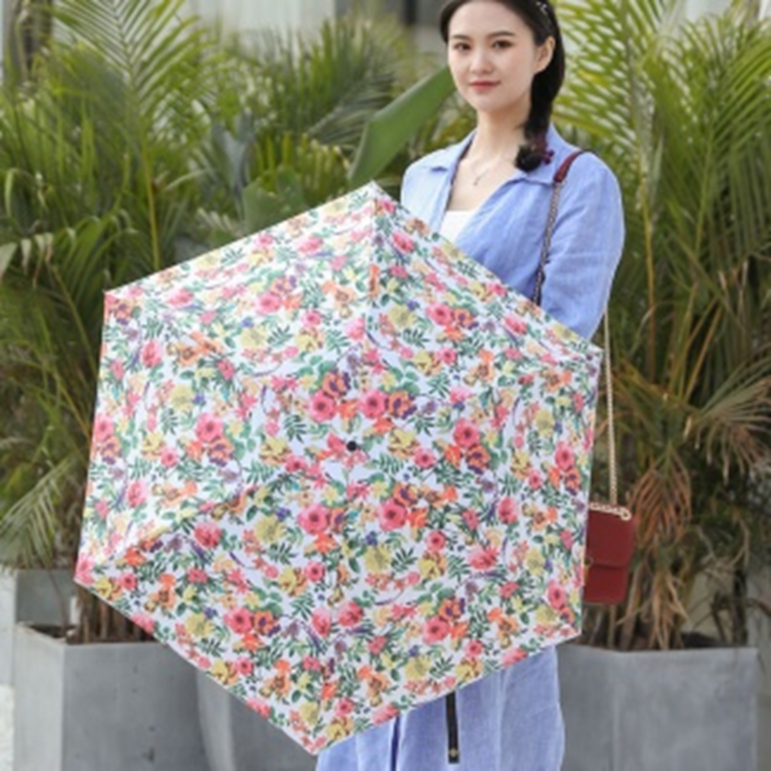 Yiwu's Longxiang "A Hundred Flowers Blooming" series of easy-to-Open and close carbon Fiber Three-fold umbrellas