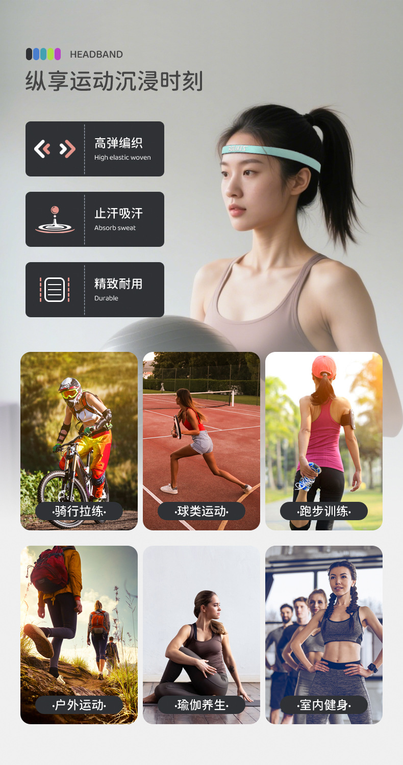 Yoga headbands, jogging sweat-absorbing bands, silicone anti-slip and sweat-stopping headbands, sports headscarves, ladies' hair ties in stock