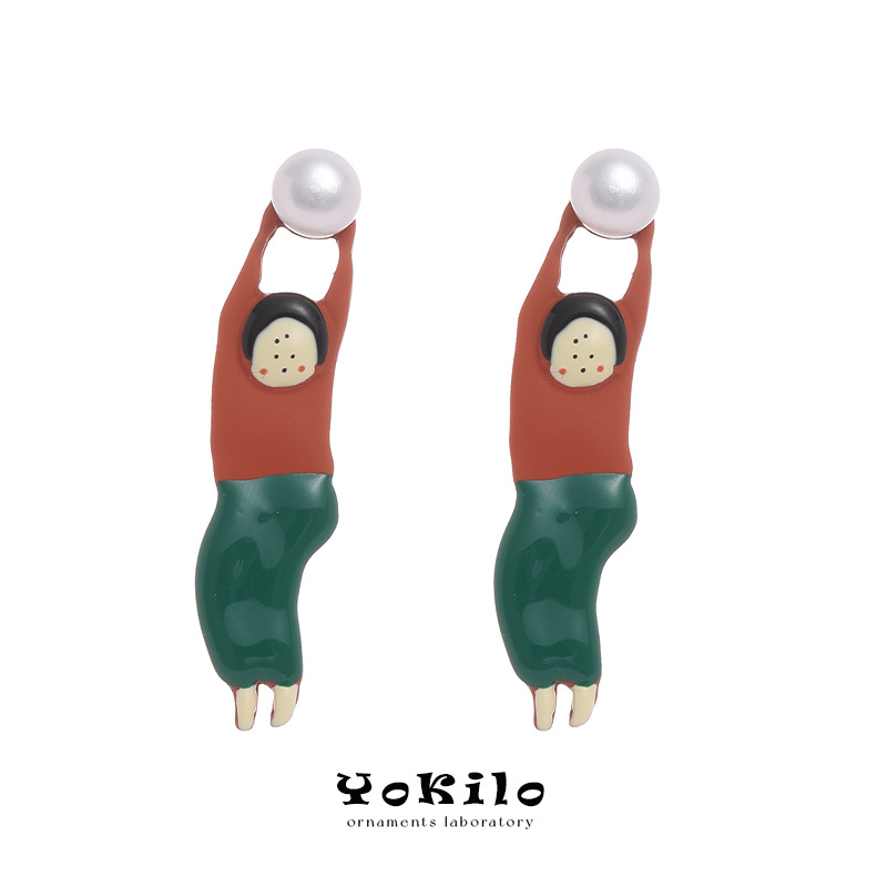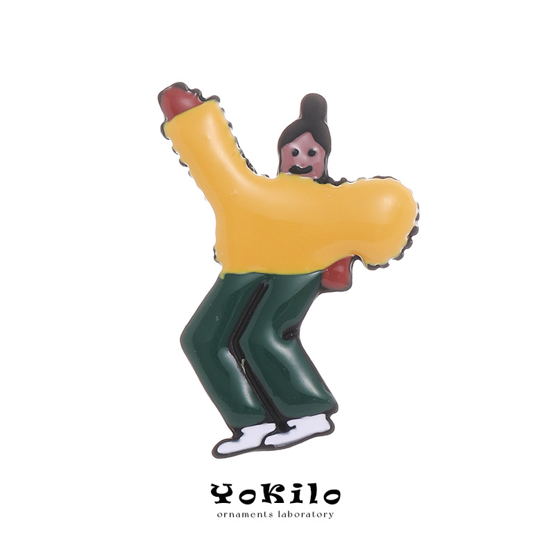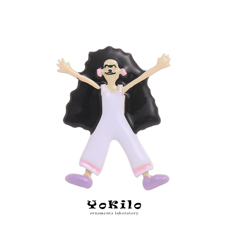 YOK Japanese-style cartoon character, humorous and funny, with a unique spray-painted hand-painted oil drip cold enamel design, is a girl with stud earrings
