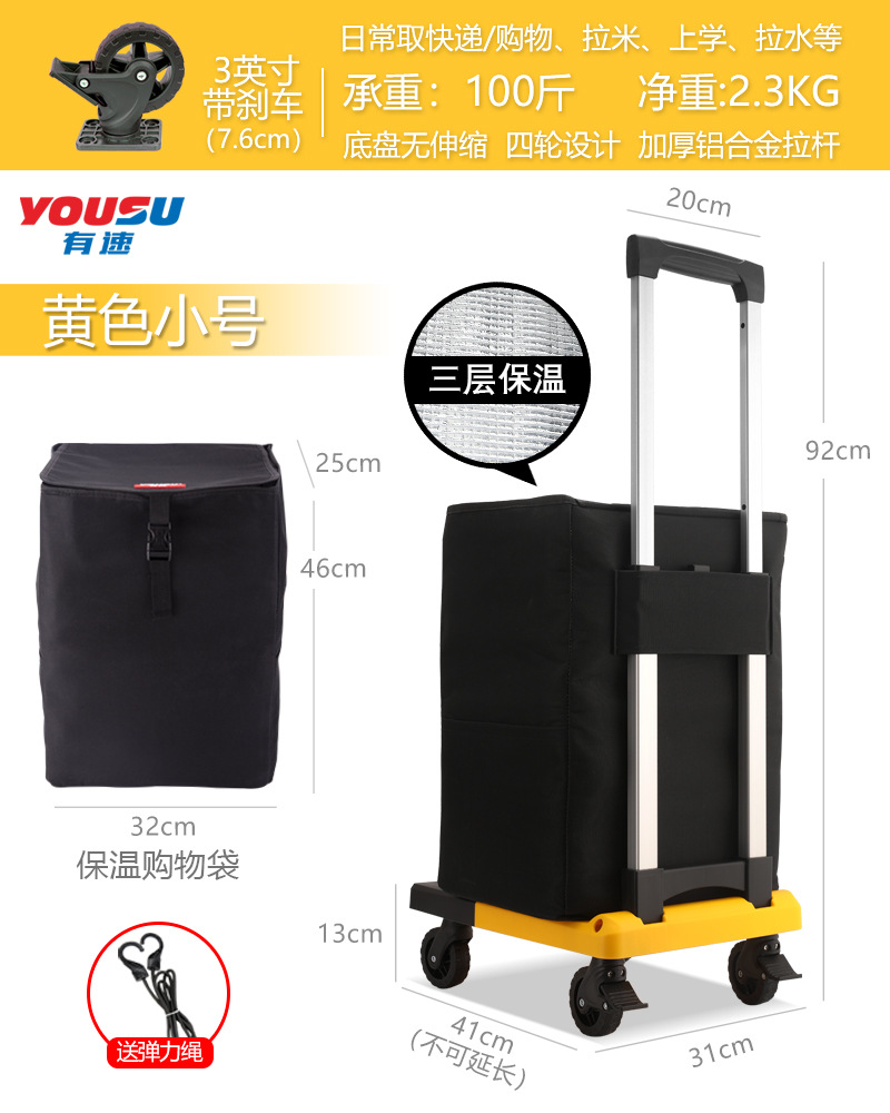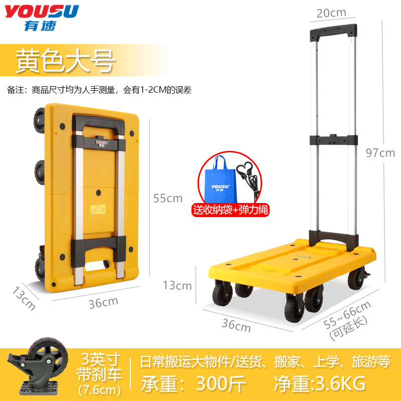 You Su family hand-pulled cart, shopping cart, grocery shopping, express delivery, small trolley, flatbed cart, trailer, folding trolley, luggage cart